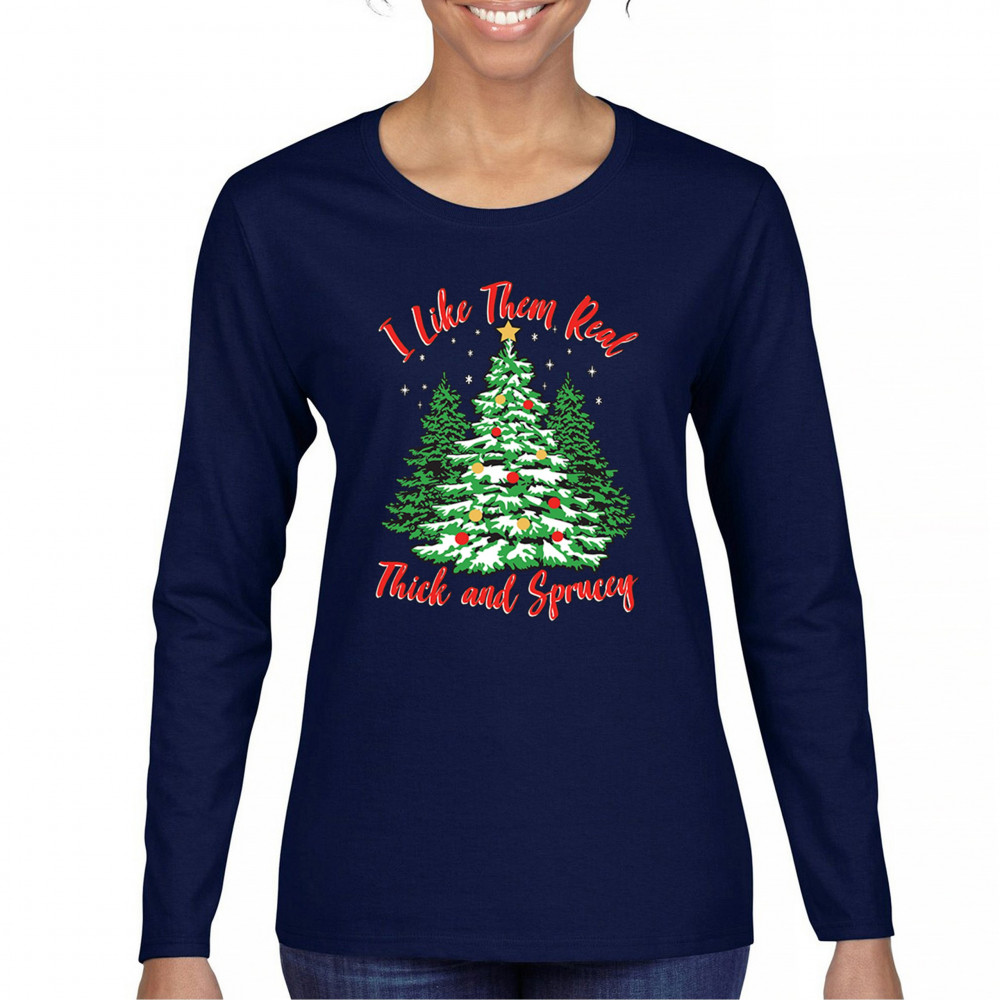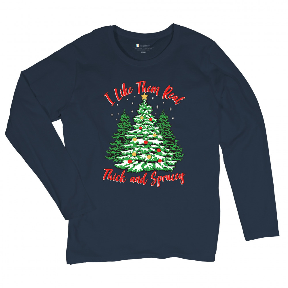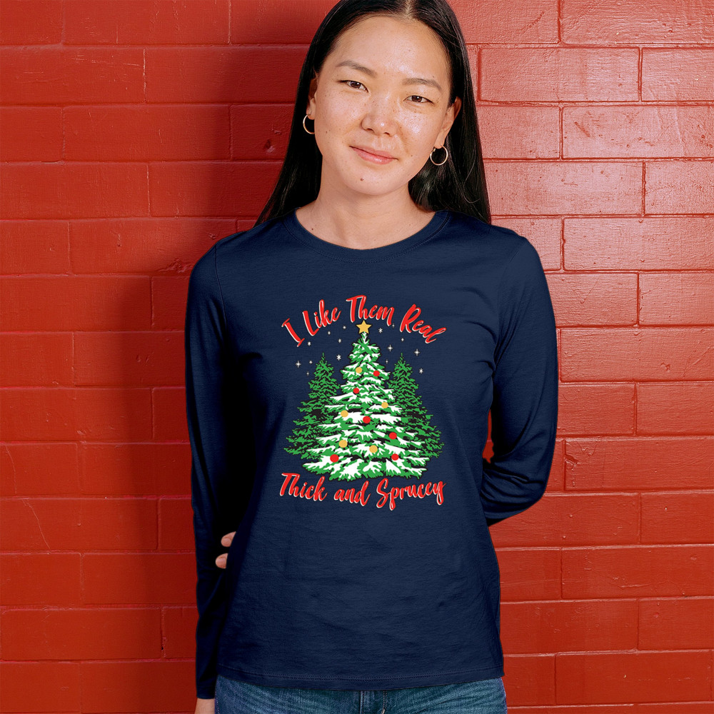 Enjoy the holiday season with our "I Like Them Real, Thick, and Sprucey" Christmas tree design, perfect for festive gatherings and holiday gifting!