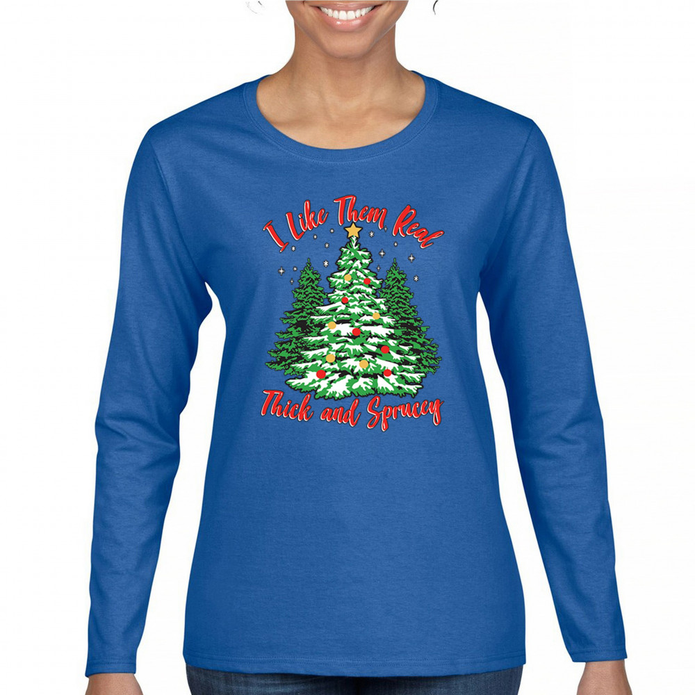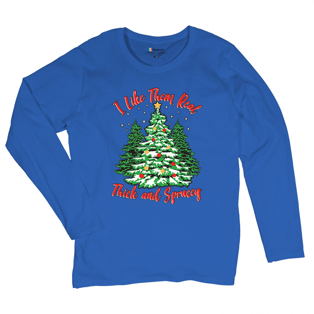 Enjoy the holiday season with our "I Like Them Real, Thick, and Sprucey" Christmas tree design, perfect for festive gatherings and holiday gifting!