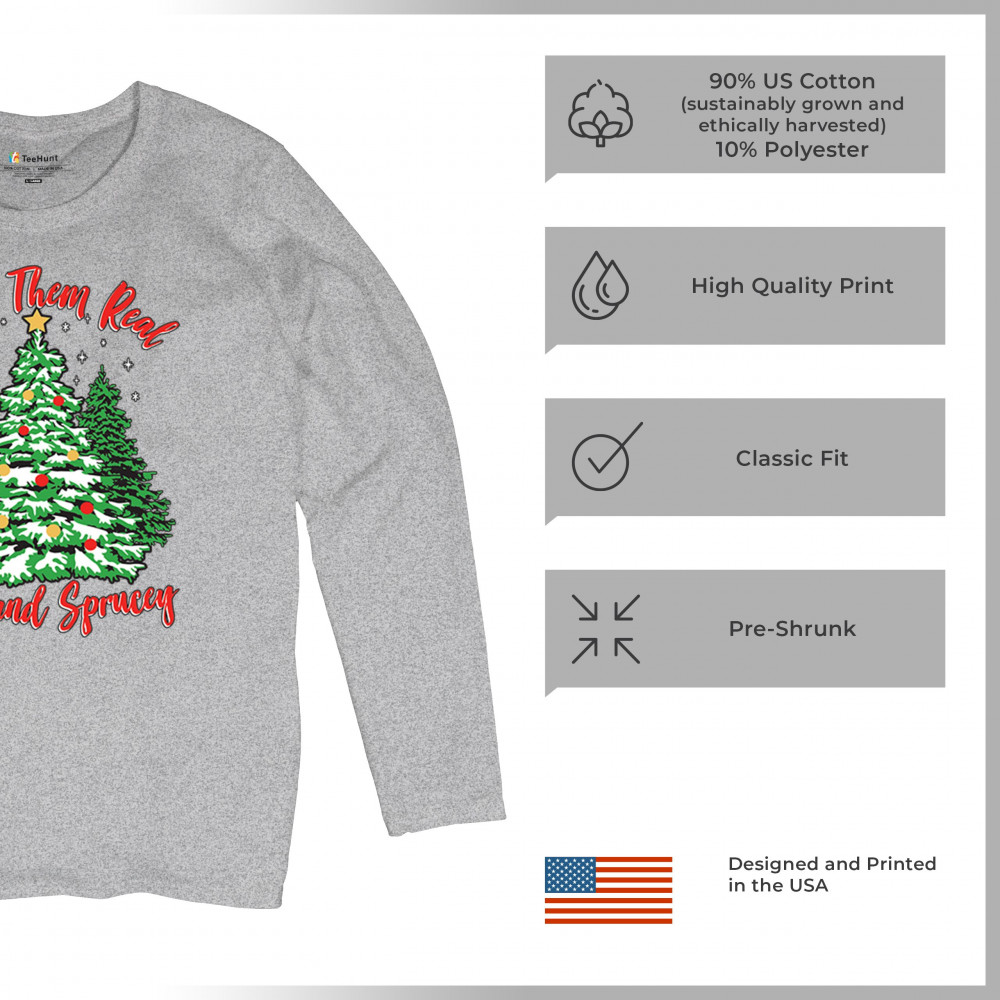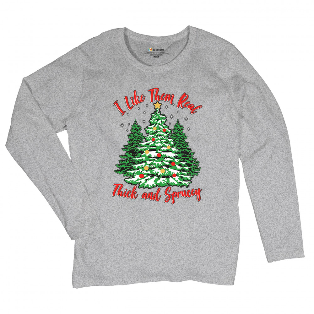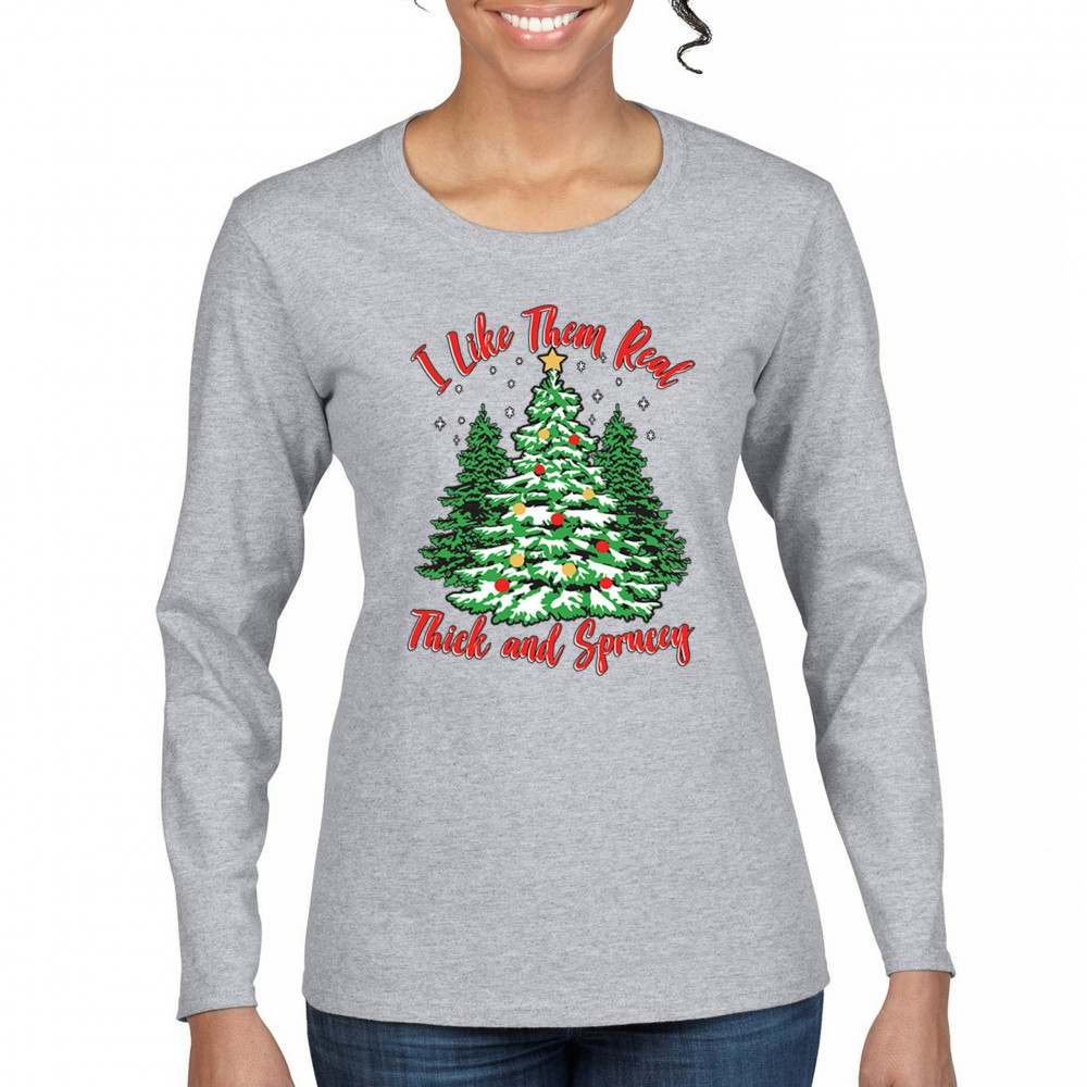 Enjoy the holiday season with our "I Like Them Real, Thick, and Sprucey" Christmas tree design, perfect for festive gatherings and holiday gifting!