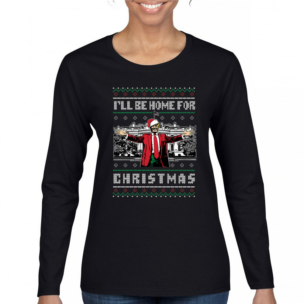 Get into the Christmas spirit with the "I'll Be Home for Christmas" design featuring Donald J. Trump in a festive holiday setting. Perfect for ugly sweater contests, holiday gatherings, and unique gifts for supporters, this humorous design adds a bold, patriotic touch to your seasonal celebrations. Whether for cozy mornings or office parties, it's a must-have for holiday cheer.
