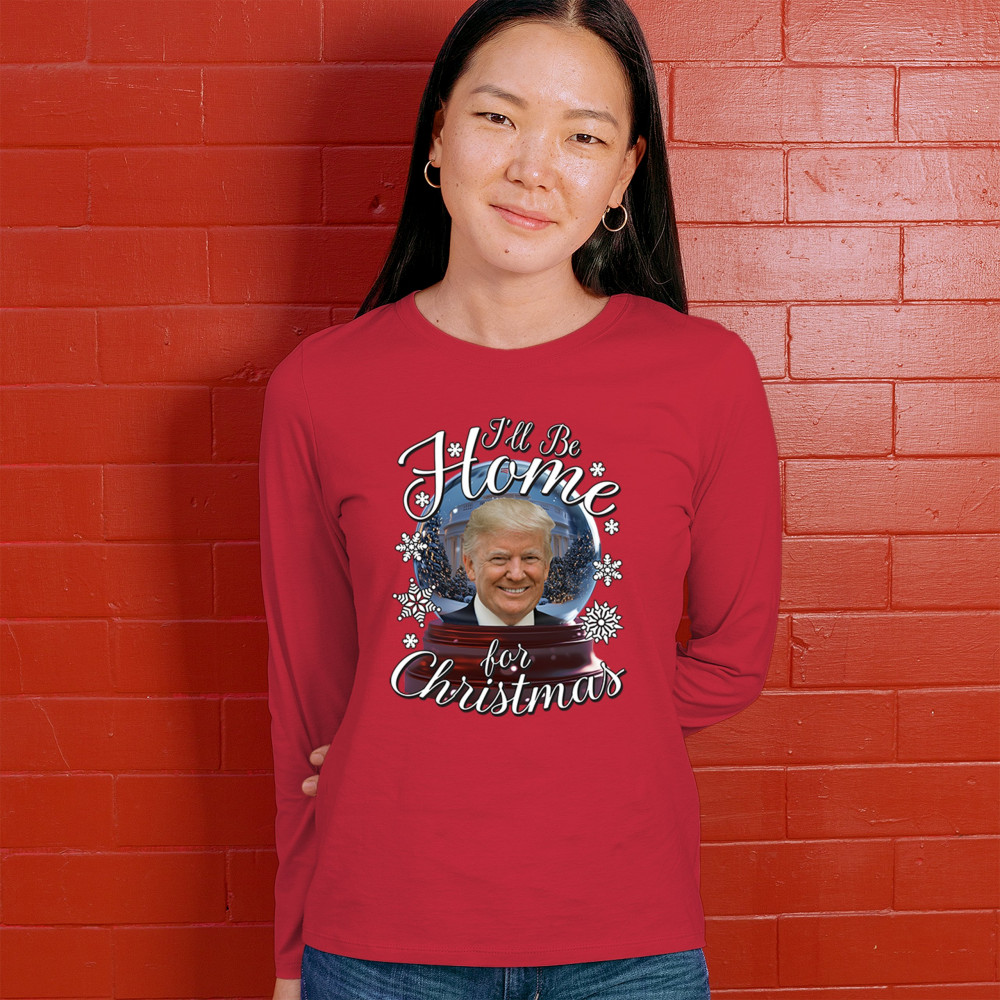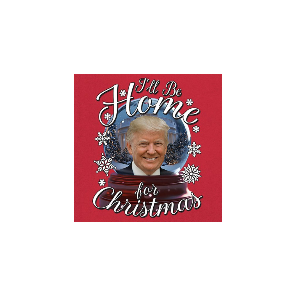 Get ready for the ultimate blend of holiday cheer and American pride with this "I'll Be Home for Christmas" design featuring Donald J. Trump in a festive snow globe. Perfect for gifts, holiday parties, or cozy mornings, this standout piece celebrates the season with style. Whether paired with matching pajamas or a cozy sweatshirt, it's a perfect way to add patriotic charm to your Feliz Navidad celebrations or office gatherings.