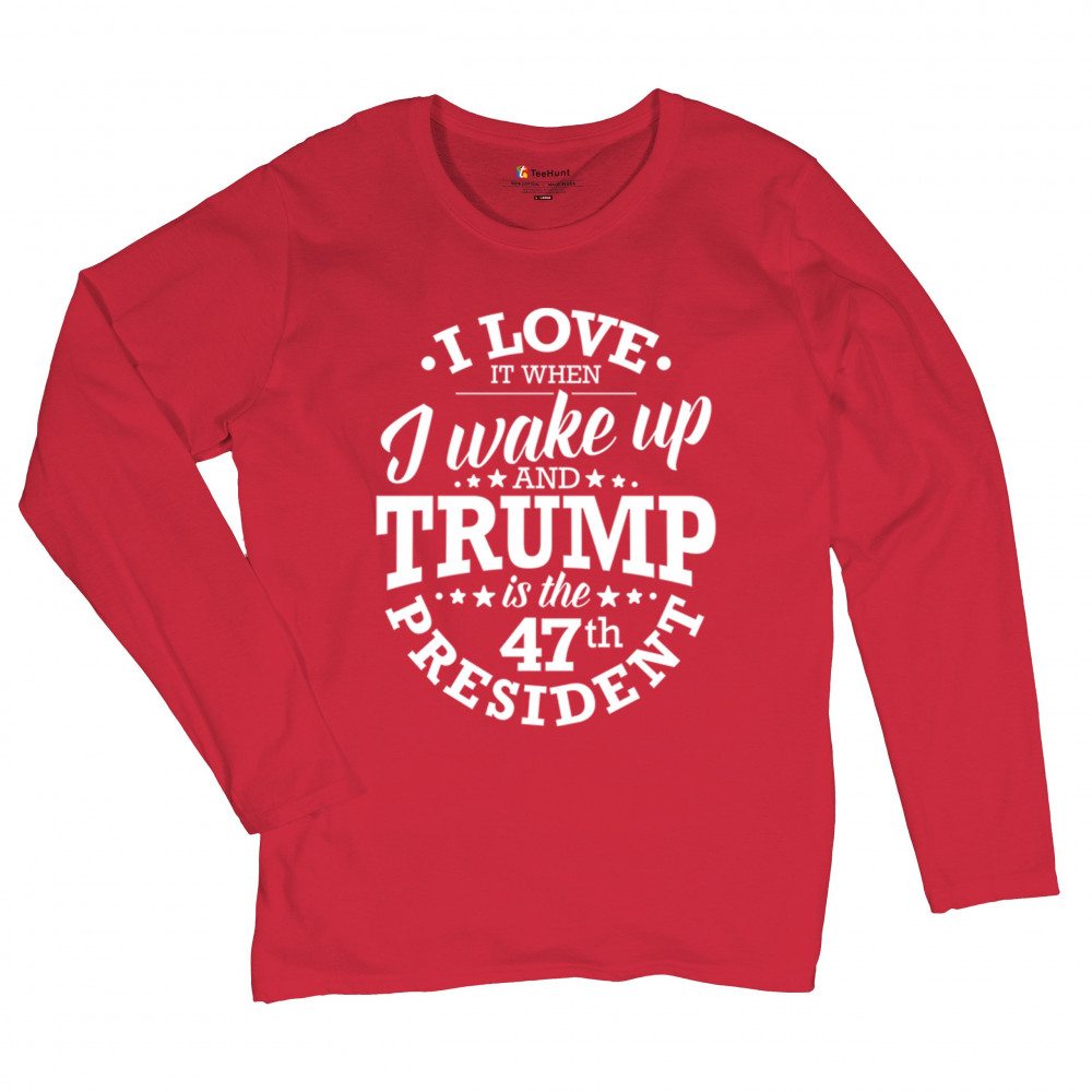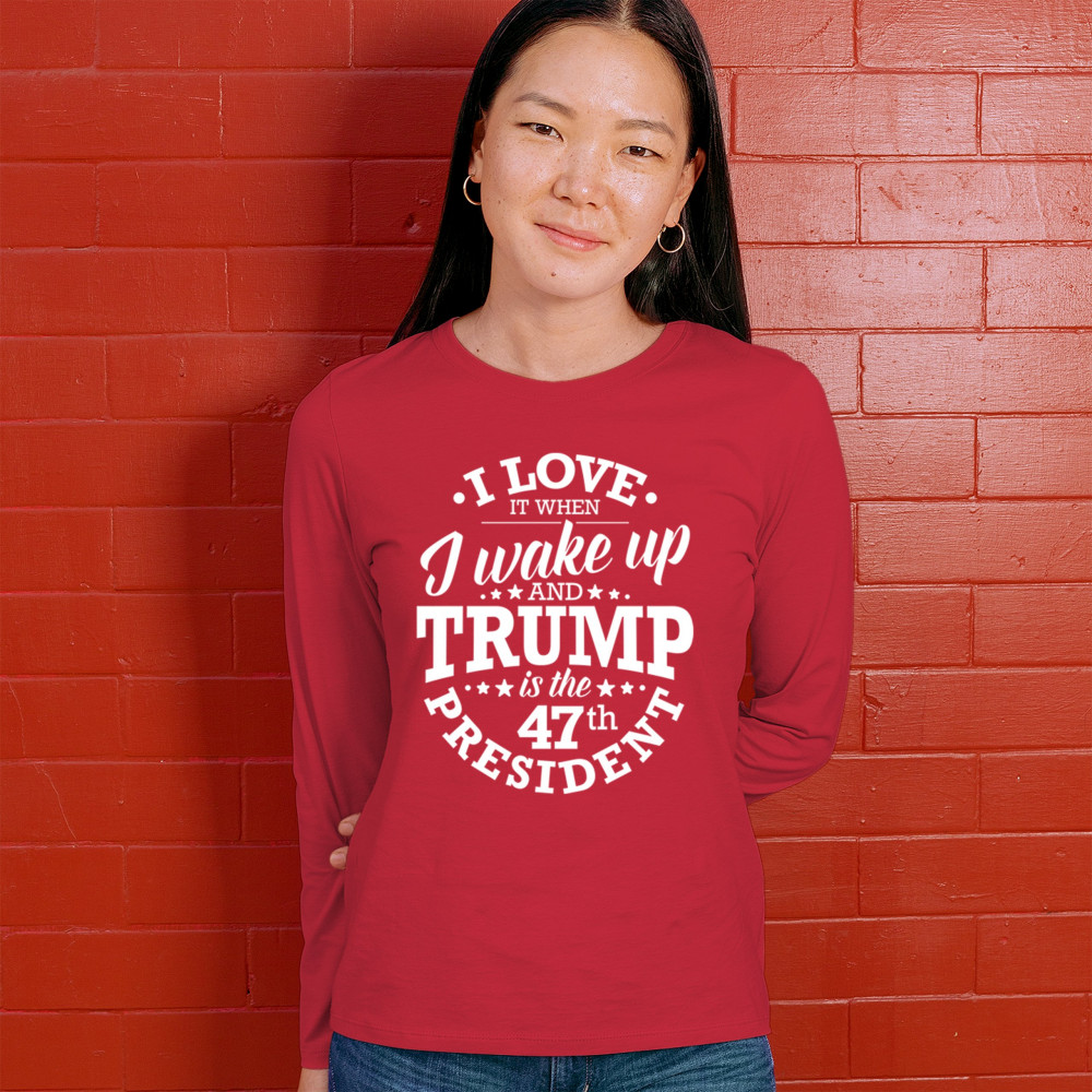 This "I Love It When I Wake Up and Trump is the 47th President" design is the ultimate expression of support for Donald J. Trump and his vision for America. Join the ranks of proud conservatives, Republicans, and America First advocates who are excited about the 47th President’s leadership. Celebrate the Red Wave and stay true to the values of freedom and strength that Trump embodies. Perfect for rallies, gatherings, and everyday patriotic wear.
