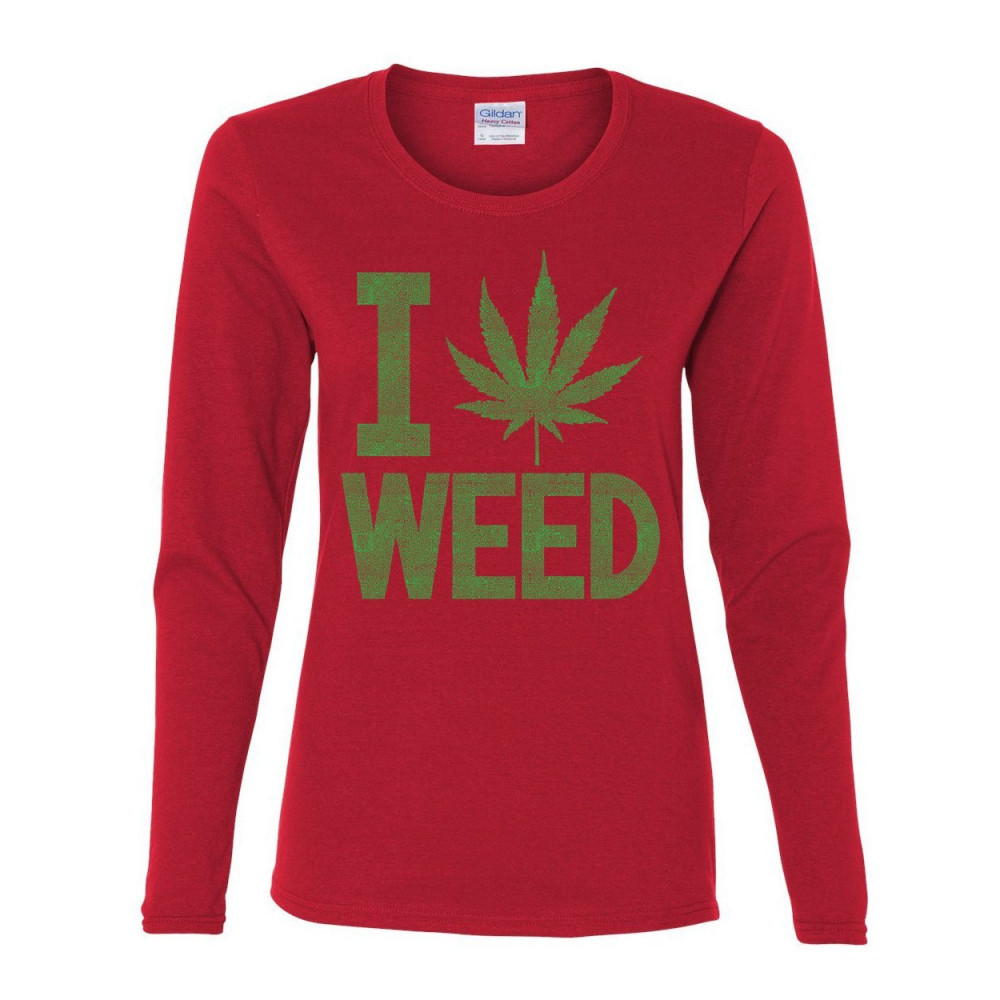 I LOVE WEED women's long sleeve tee smoking 420 pot reggae rasta marijuana kush red