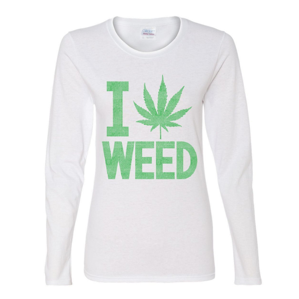 I LOVE WEED women's long sleeve tee smoking 420 pot reggae rasta marijuana kush white