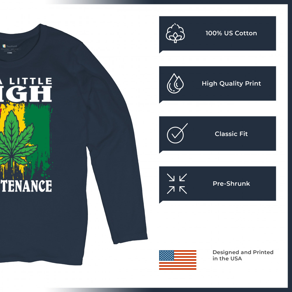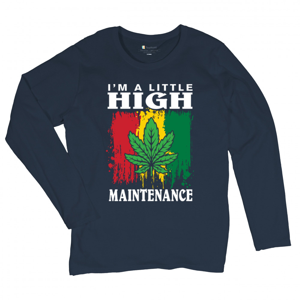 "I'm a Little High Maintenance" design with a bold cannabis leaf and vibrant background. Perfect for fans of Mary Jane, humor, and relaxed, trippy style.