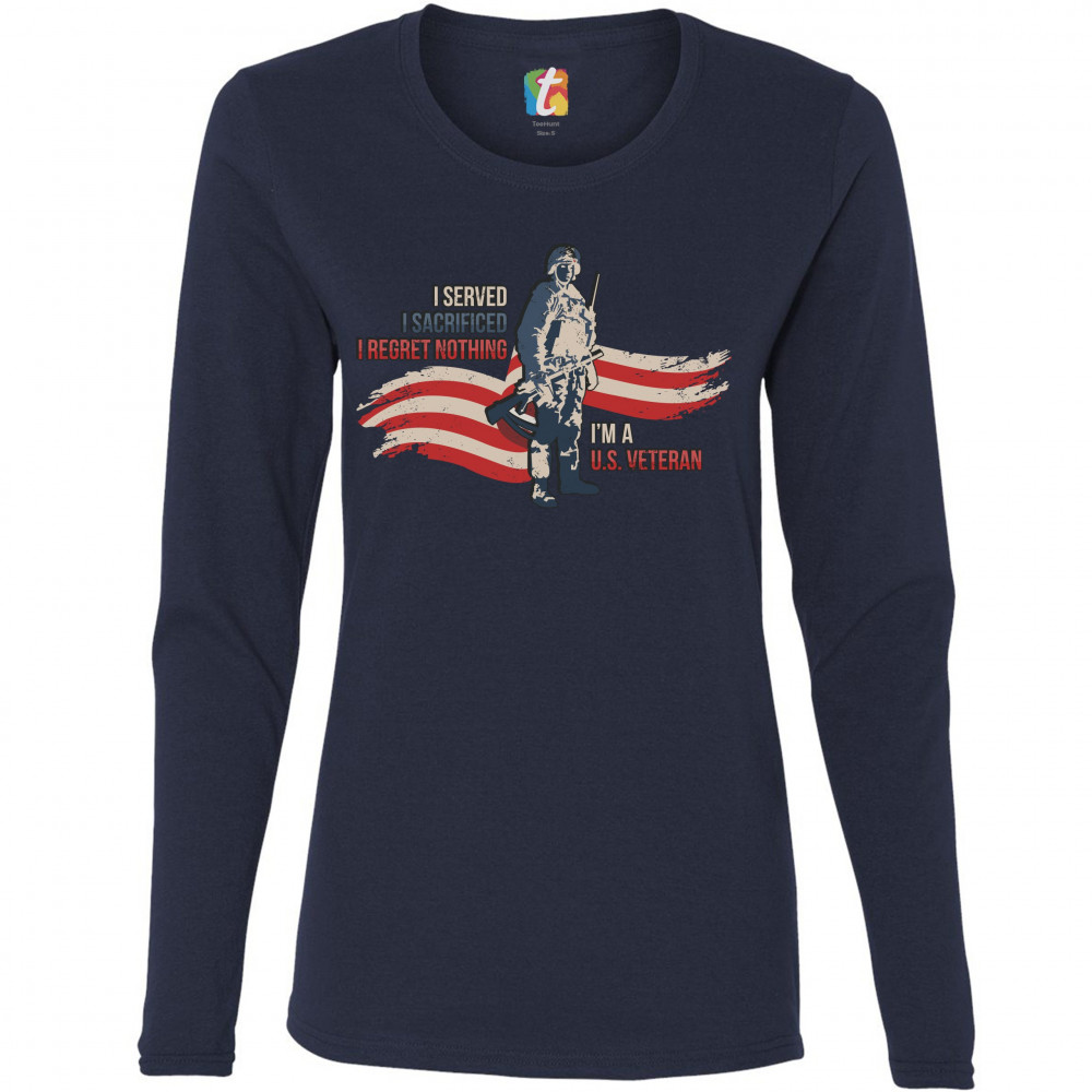 I'M A U.S. VETERAN women's long sleeve t-shirt military soldier patriotic navy blue