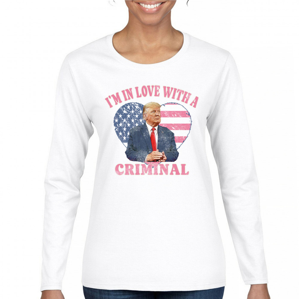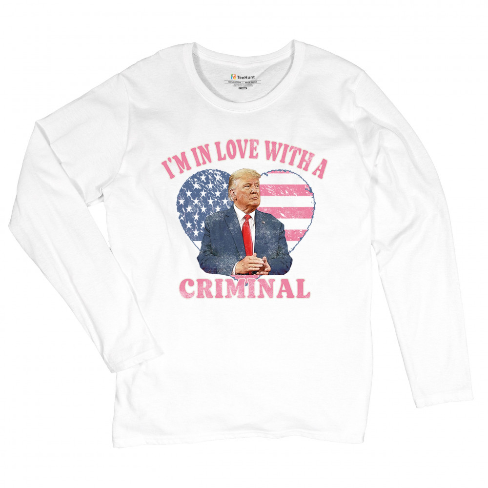 Support Trump with this "I'm in Love with a Criminal" design, embodying conservative values and America First ideals. Perfect for rallies and daily expression.