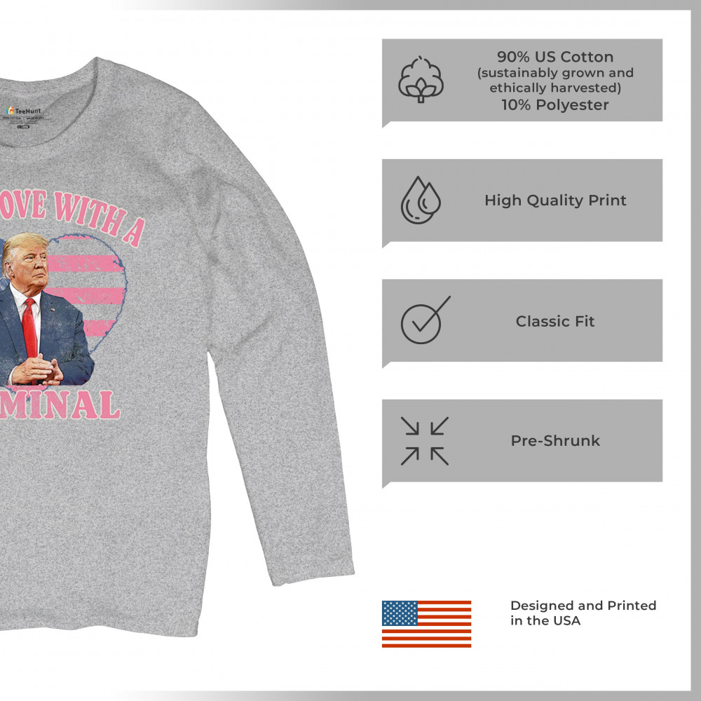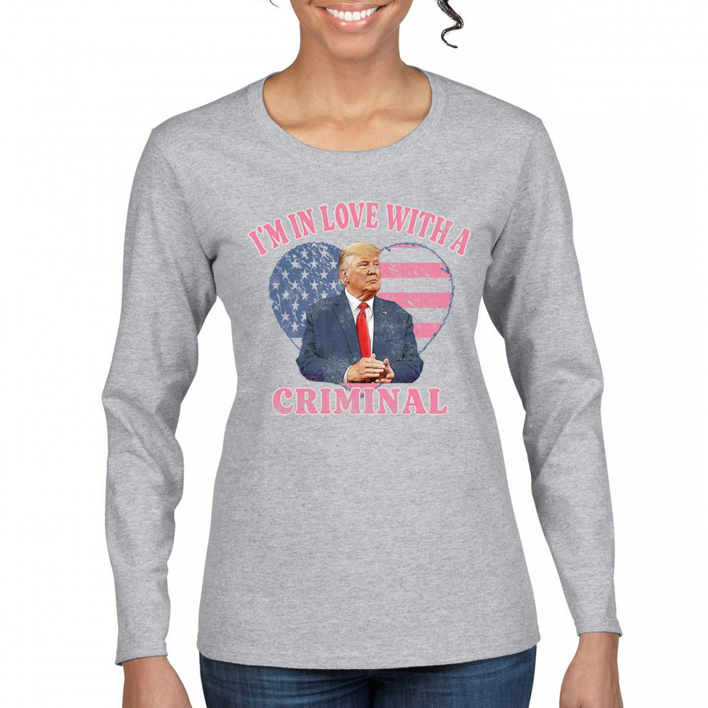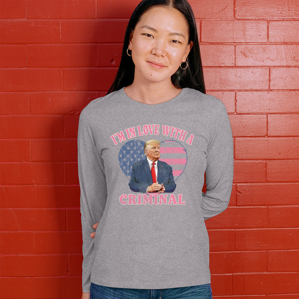 Support Trump with this "I'm in Love with a Criminal" design, embodying conservative values and America First ideals. Perfect for rallies and daily expression.