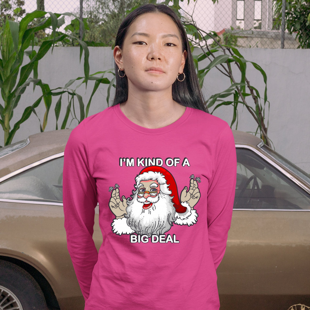 I'M KIND OF A BIG DEAL women's long sleeve t-shirt santa claus merry christmas pink