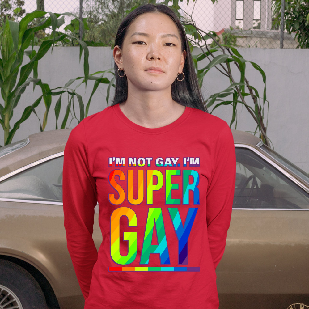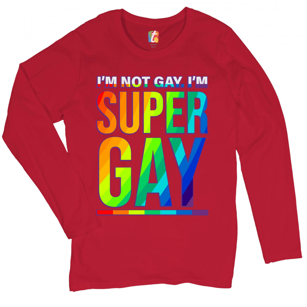 I'M NOT GAY. I'M SUPER GAY women's long sleeve t-shirt lgbtq pride positivity red