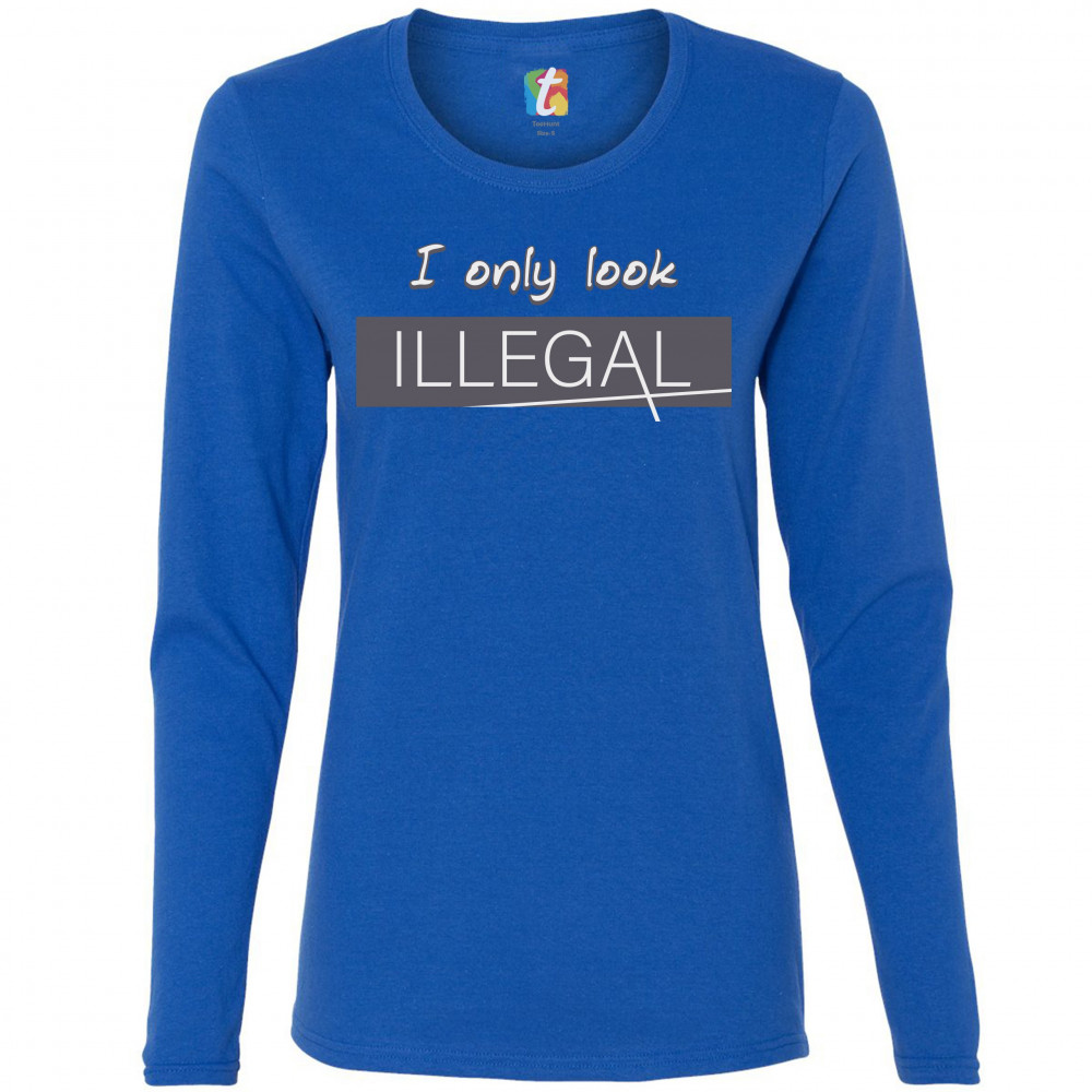 I ONLY LOOK ILLEGAL women's long sleeve t-shirt stop racism pro immigration royal blue