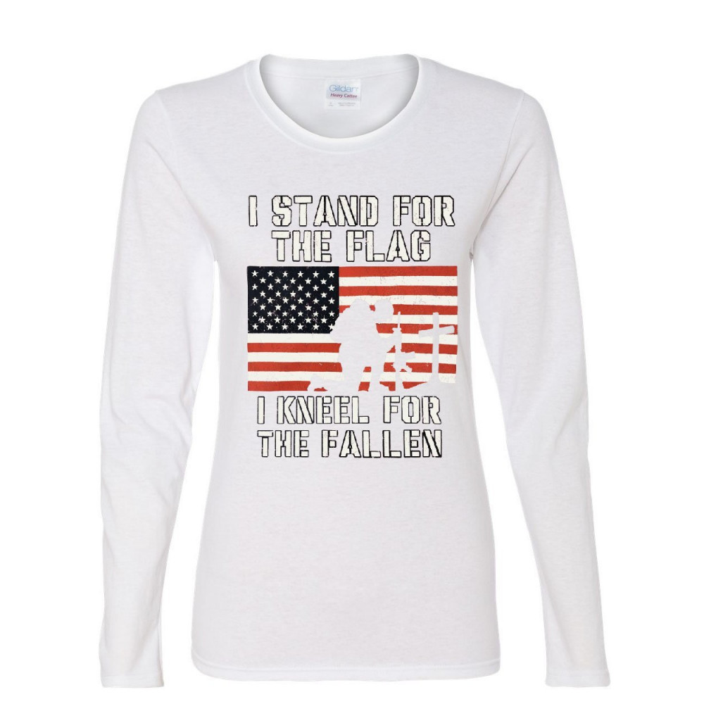 I STAND FOR THE FLAG I KNEEL FOR THE FALLEN women's long sleeve tee patriotic white
