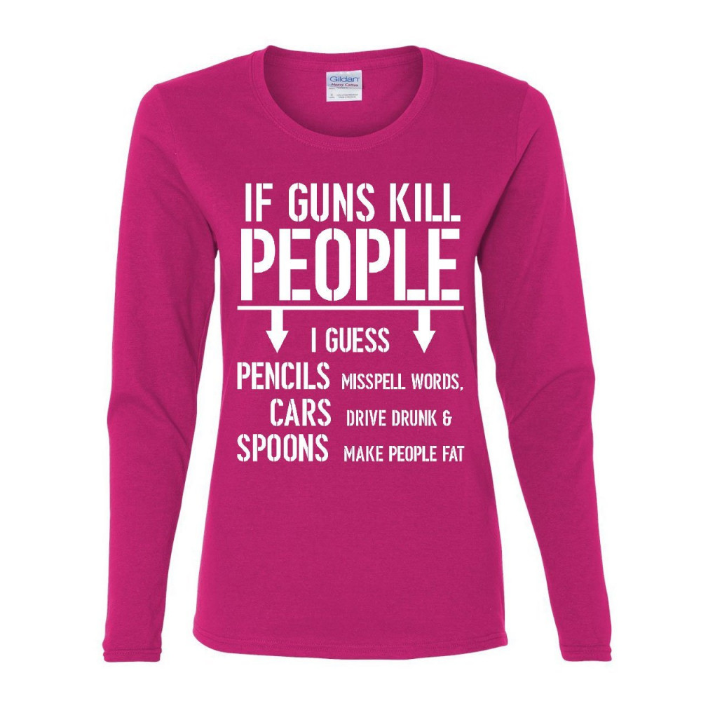 IF GUNS KILL PEOPLE, I GUESS if guns kill people women's long sleeve tee 2nd amendment gun rights funny 2a pink