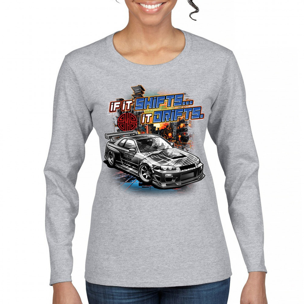 "If It Shifts, It Drifts" design. Perfect for car enthusiasts, featuring a detailed car and vibrant cityscape. Comfortable, durable, and stylish.