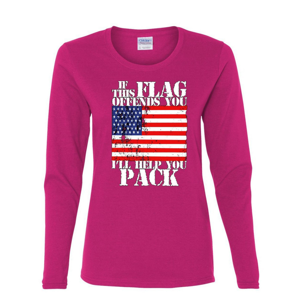 IF THIS FLAG OFFENDS YOU I'LL HELP YOU PACK women's long sleeve tee patriotic pink
