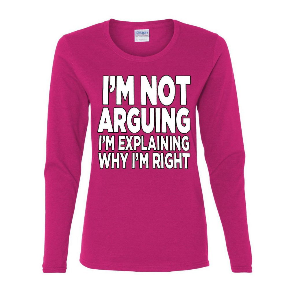 I'M NOT ARGUING women's long sleeve tee sarcasm hilarious offensive humor funny pink