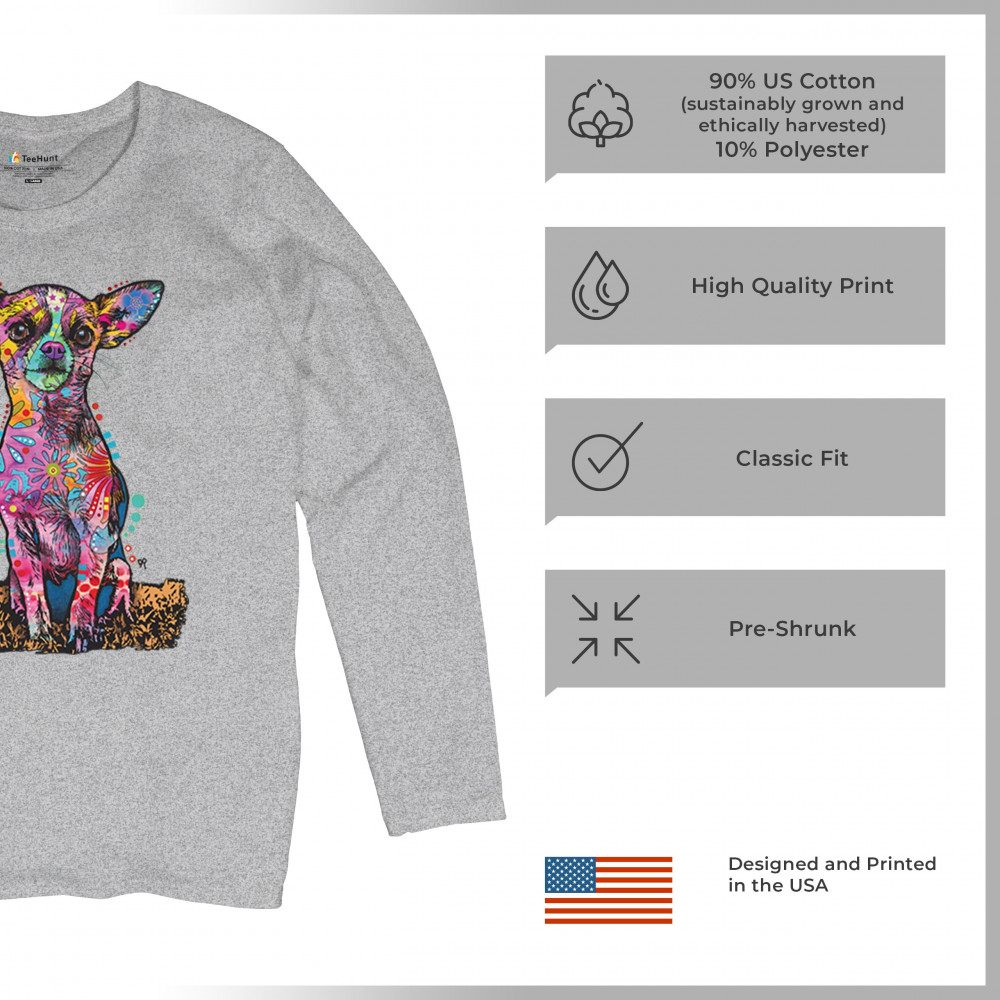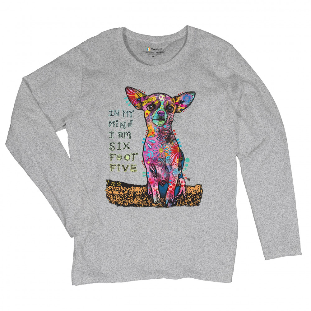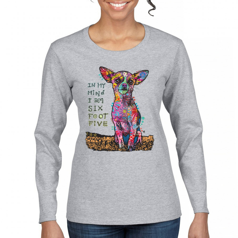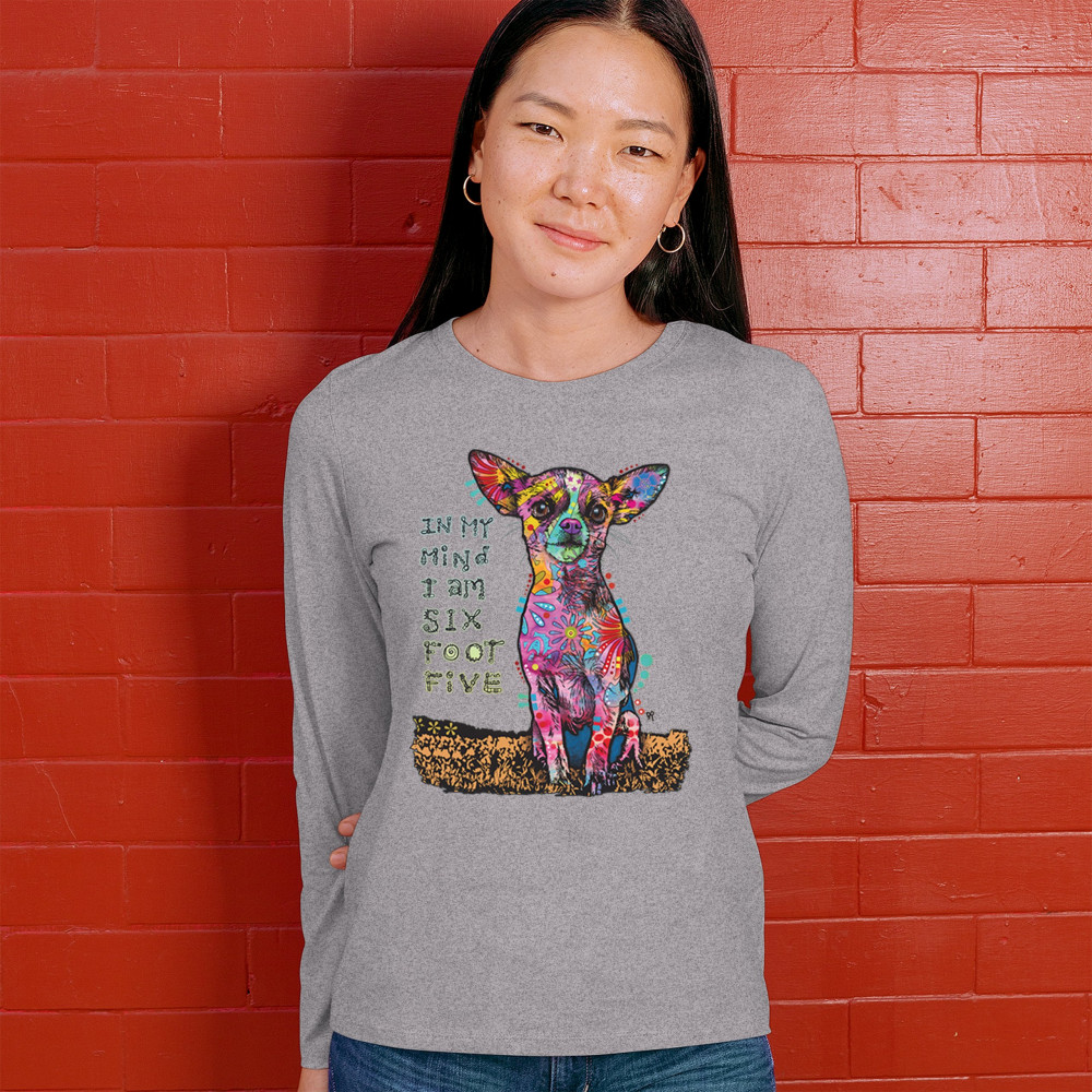 IN MY MIND I'M SIX FOOT FIVE women's long sleeve t-shirt dean russo chihuahua gray
