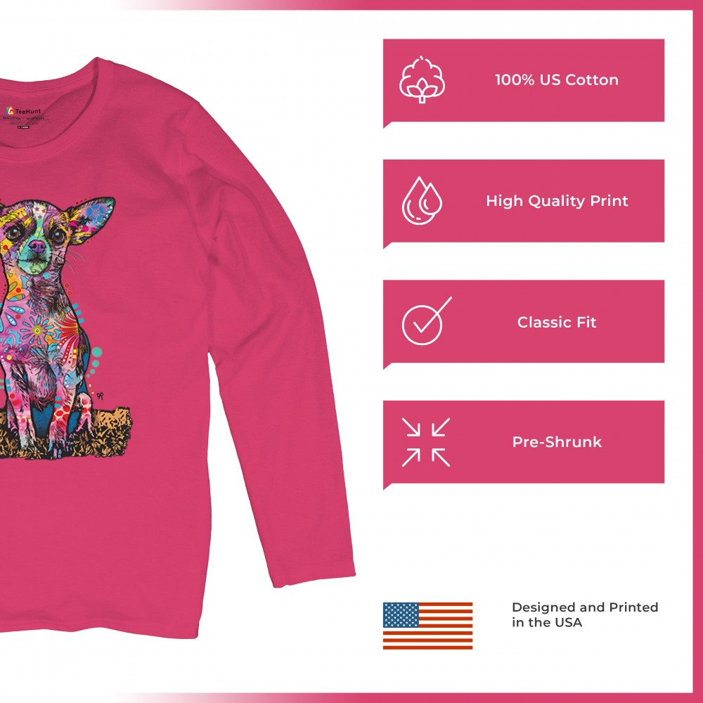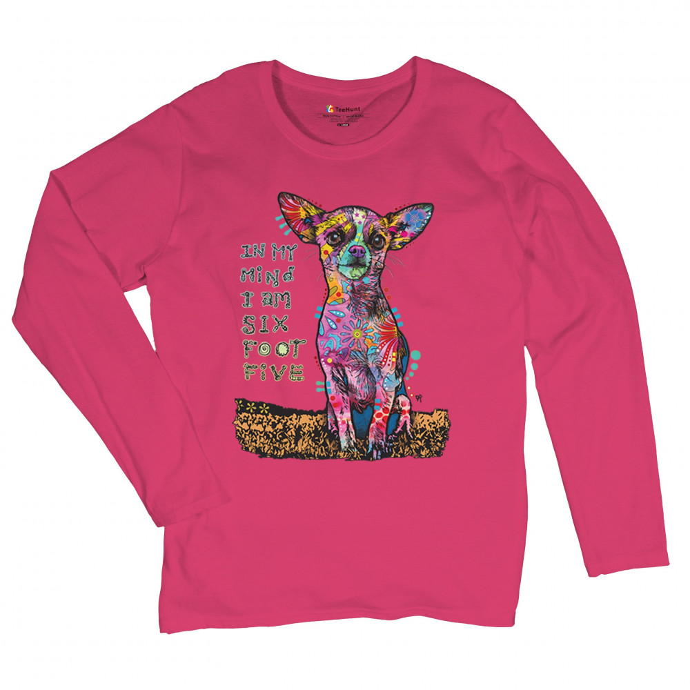 IN MY MIND I'M SIX FOOT FIVE women's long sleeve t-shirt dean russo chihuahua pink