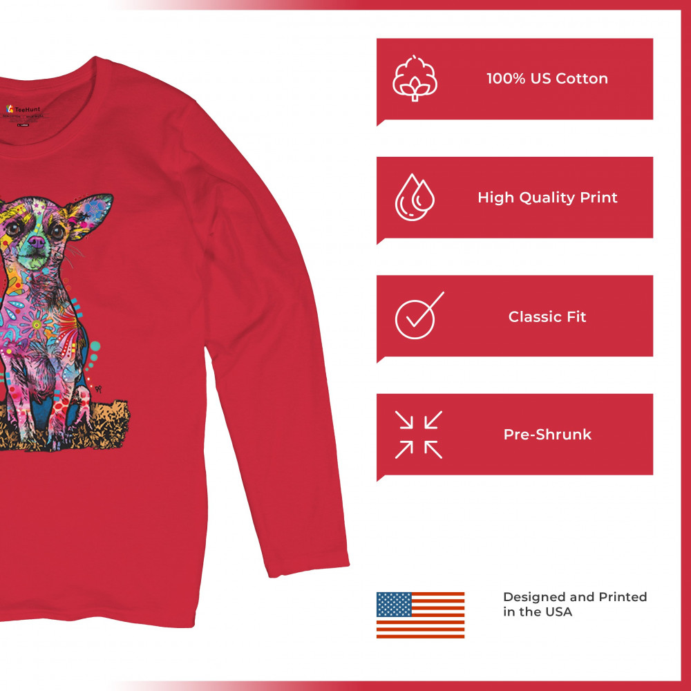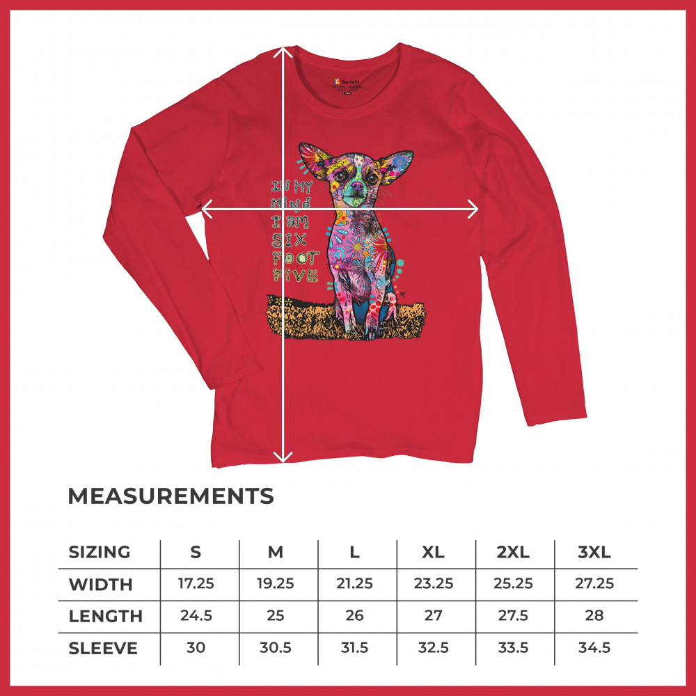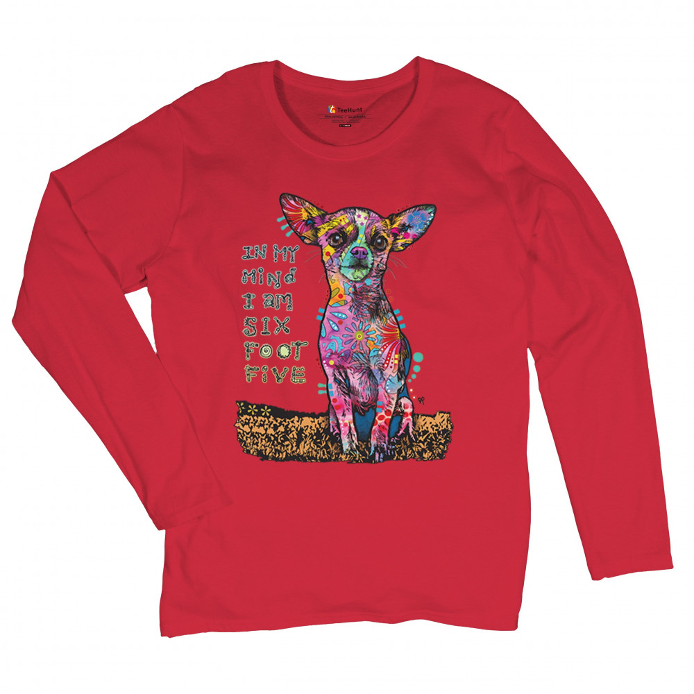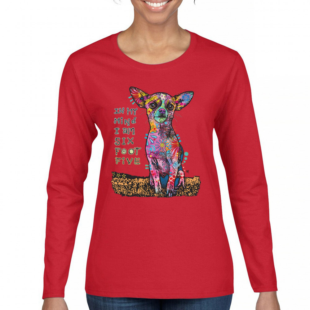 IN MY MIND I'M SIX FOOT FIVE women's long sleeve t-shirt dean russo chihuahua red