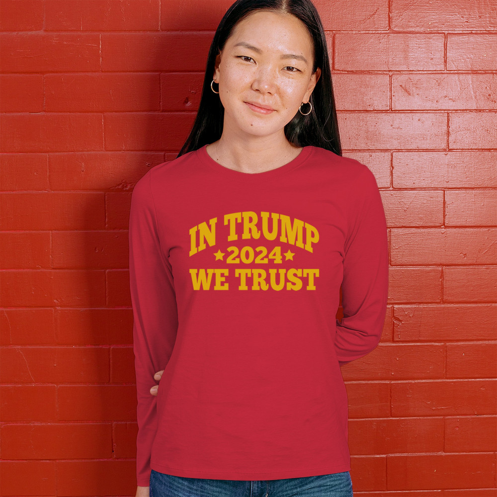 Show your unwavering trust in President Trump with our 'In Trump We Trust 2024' design. Perfect for proud supporters of America first. Join the movement.