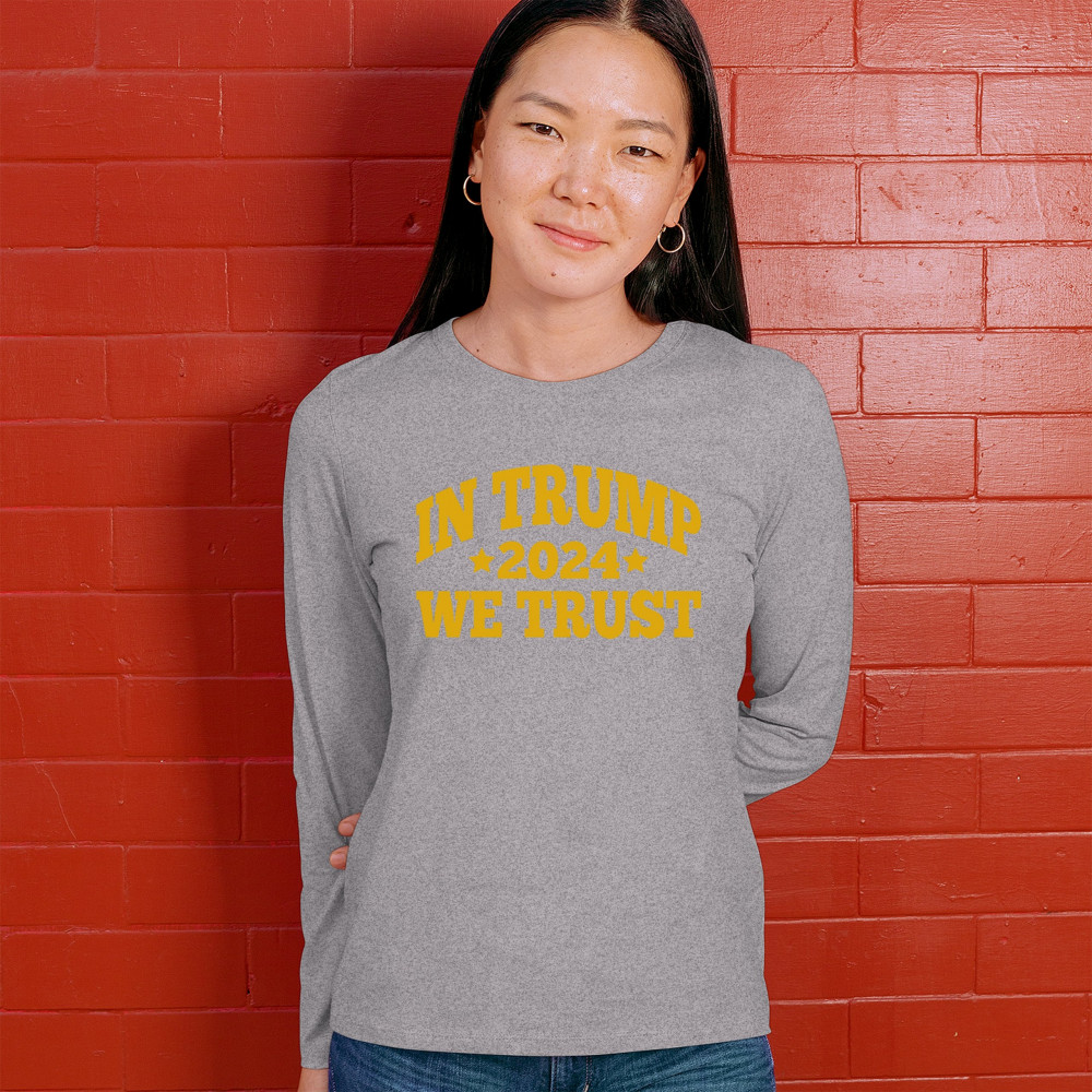Show your unwavering trust in President Trump with our 'In Trump We Trust 2024' design. Perfect for proud supporters of America first. Join the movement.