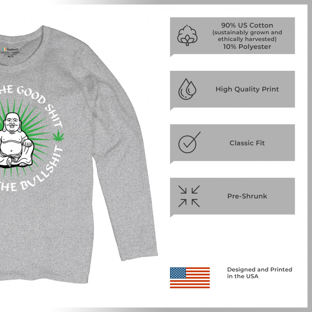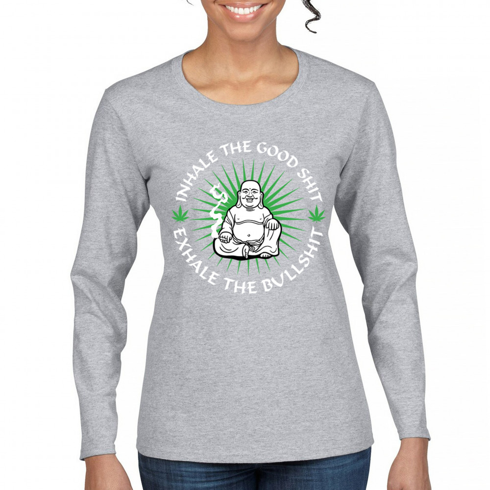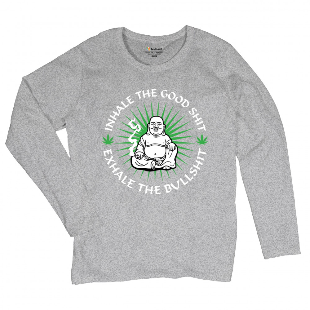 This hilarious and zen-inspired design features a happy Buddha with a joint, surrounded by cannabis leaves. “Inhale the Good Shit, Exhale the Bullshit†delivers chill stoner wisdom with a wink. Ideal for mindful marijuana lovers, 420 fans, or spiritual rebels with a sense of humor and a love for weed.