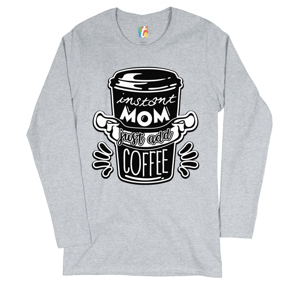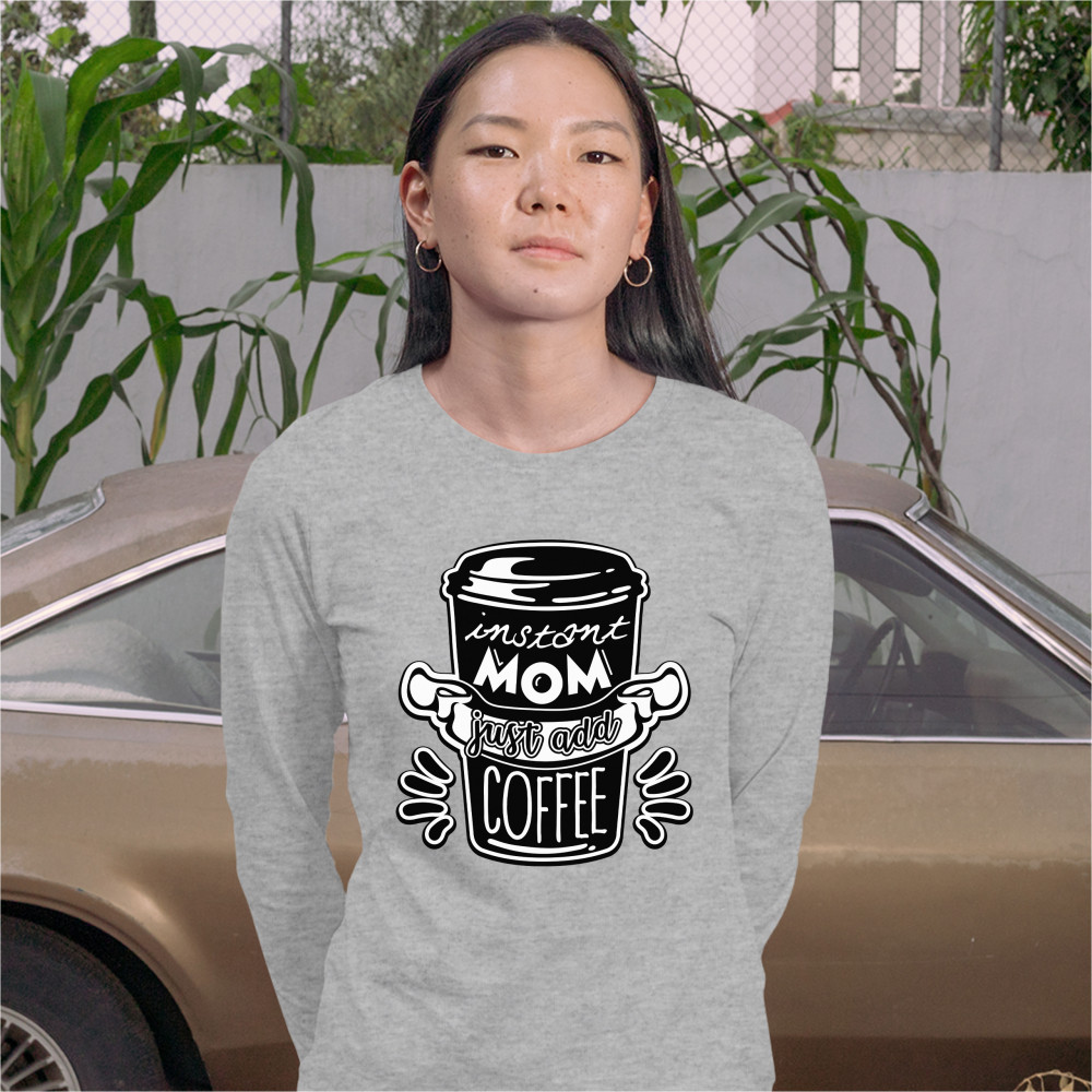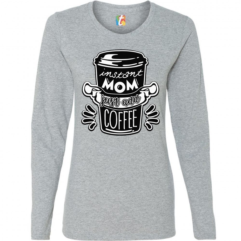 INSTANT MOM JUST ADD COFFEE women's long sleeve t-shirt mother's day mom life gray