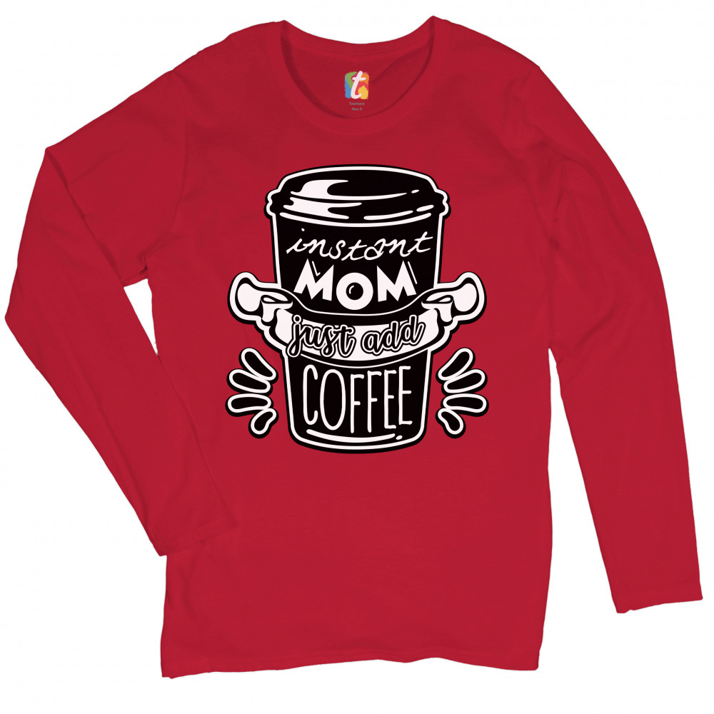 INSTANT MOM JUST ADD COFFEE women's long sleeve t-shirt mother's day mom life red