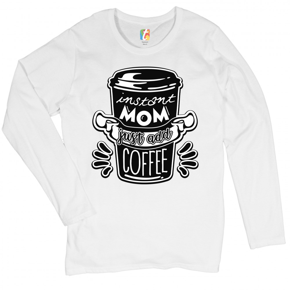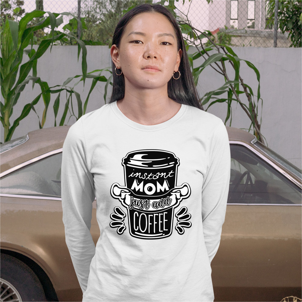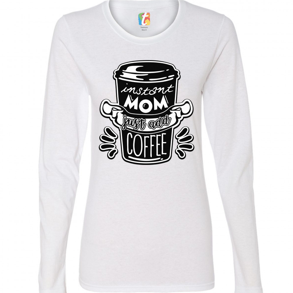 INSTANT MOM JUST ADD COFFEE women's long sleeve t-shirt mother's day mom life white