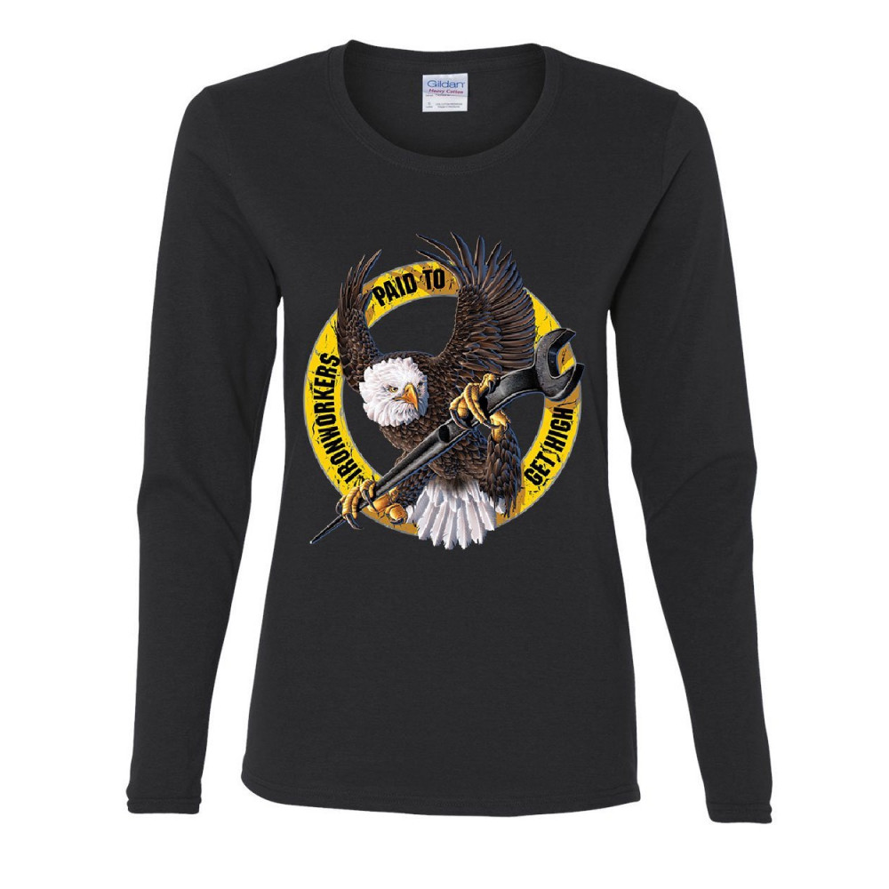 IRONWORKERS PAID TO GET HIGH women's long sleeve tee construction workers union black