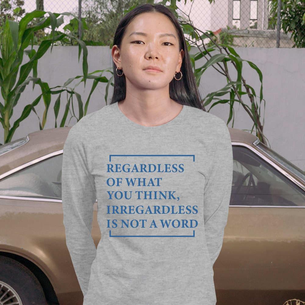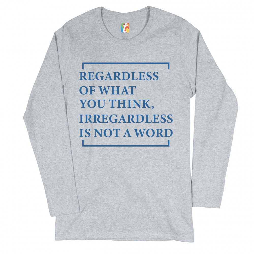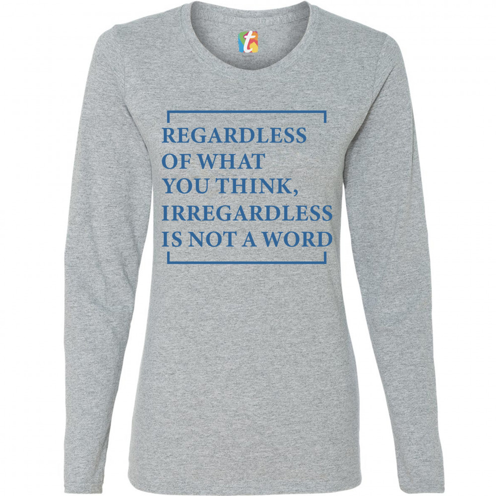 IRREGARDLESS IS NOT A WORD women's long sleeve t-shirt funny english grammar gray