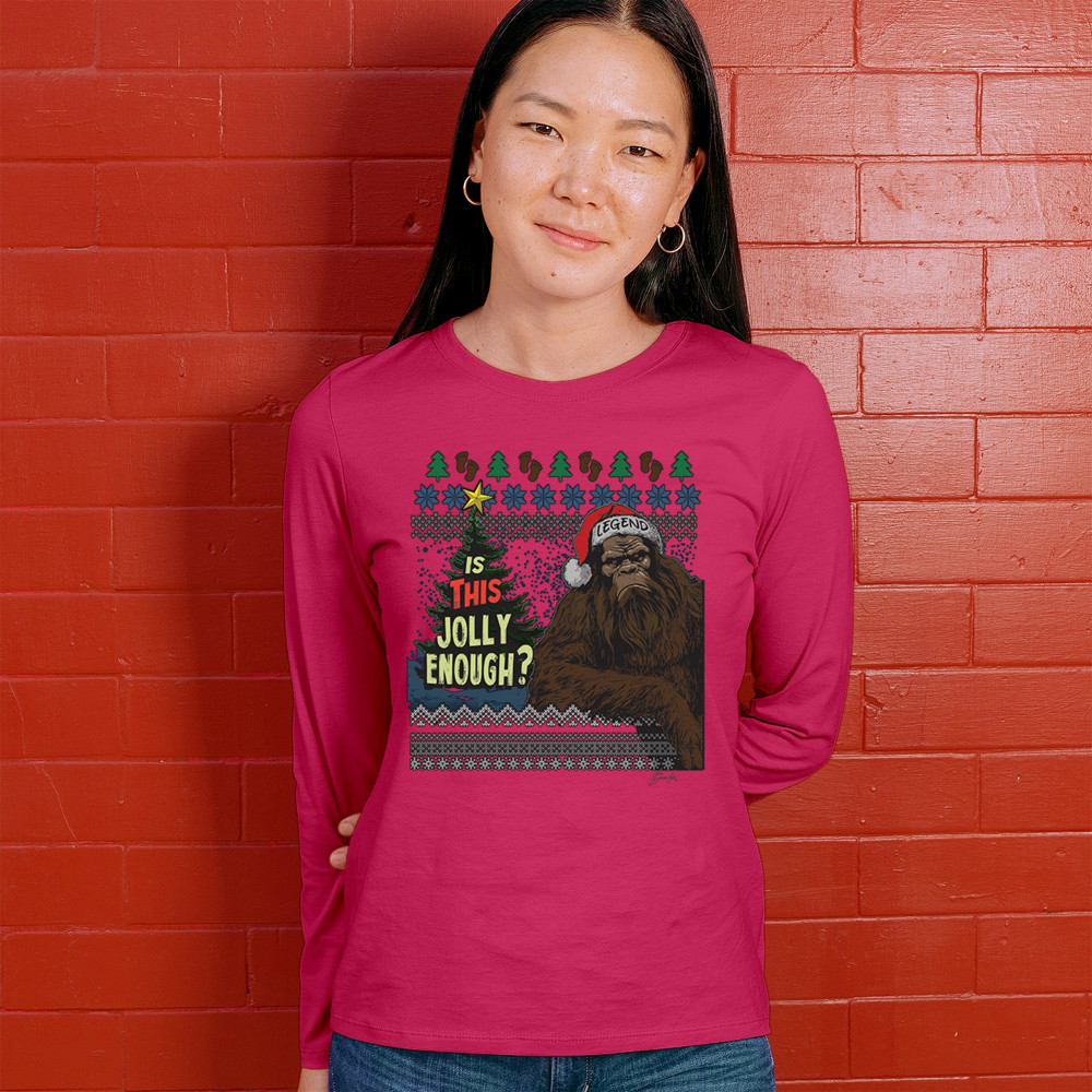 Add humor to your holiday season with the "Is This Jolly Enough?" design, featuring a legendary creature ready for Christmas cheer. Perfect for holiday gatherings and cozy winter nights!