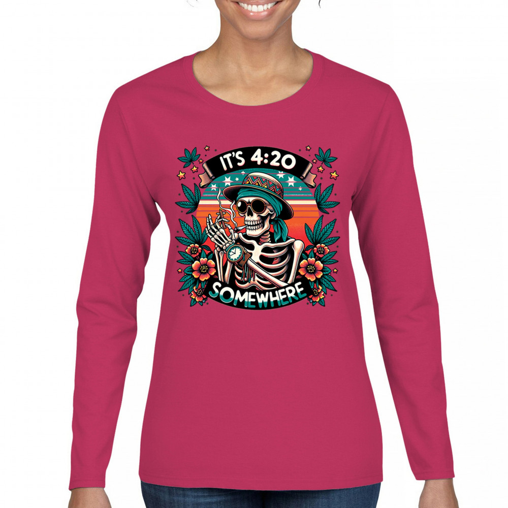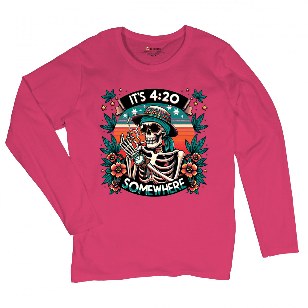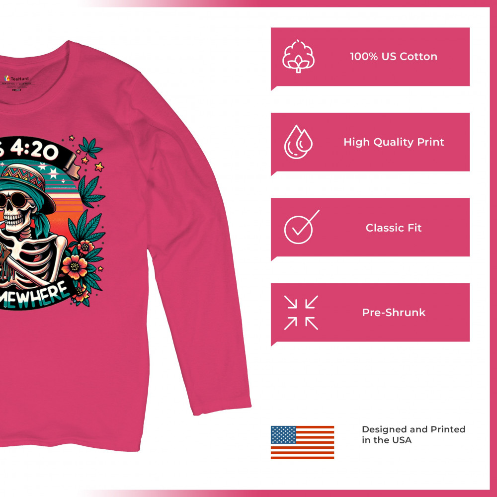 Get lifted with this “It’s 4:20 Somewhere†design featuring a joint-smoking skeleton, tropical sunset, and Deadhead stoner vibes. With bold trippy colors and beachy weed art, this tee is perfect for April 20 parties, summer festivals, and cannabis lovers living the high life.