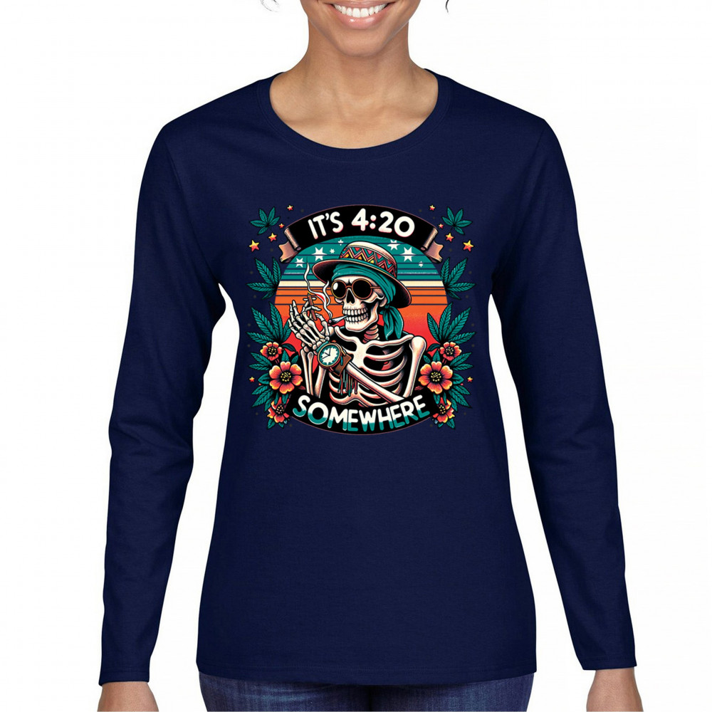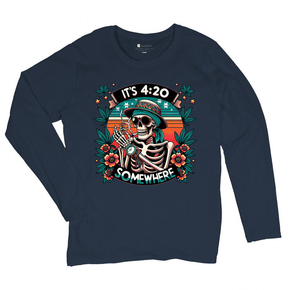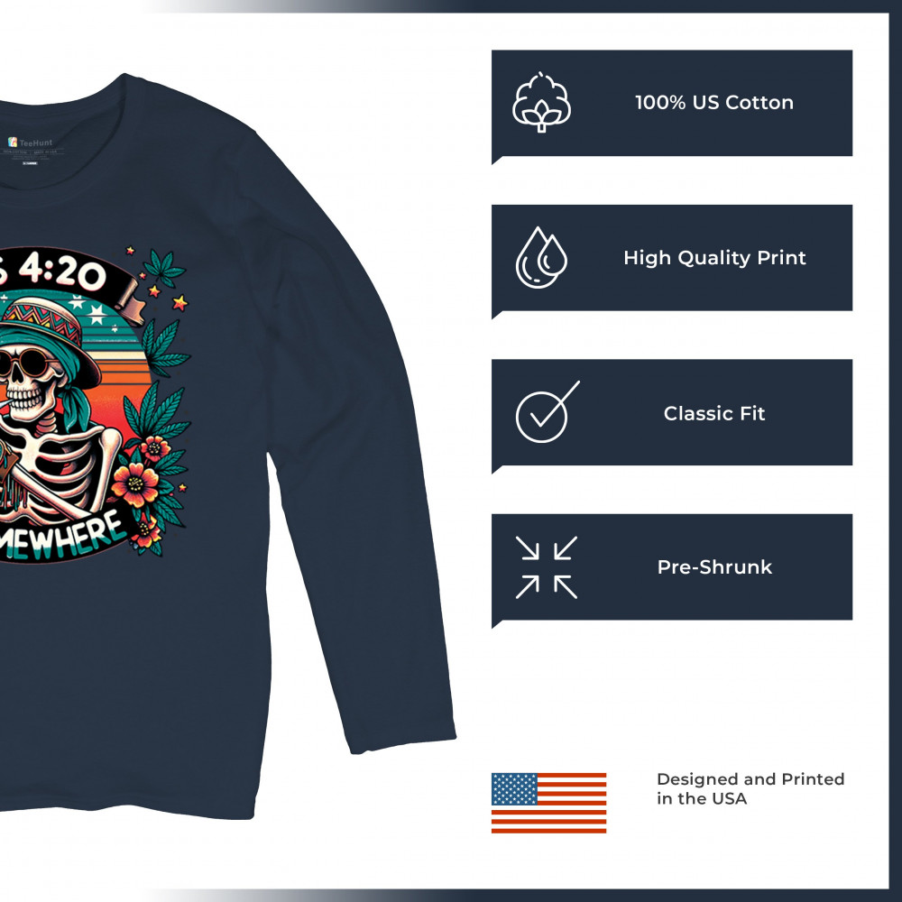Get lifted with this “It’s 4:20 Somewhere†design featuring a joint-smoking skeleton, tropical sunset, and Deadhead stoner vibes. With bold trippy colors and beachy weed art, this tee is perfect for April 20 parties, summer festivals, and cannabis lovers living the high life.