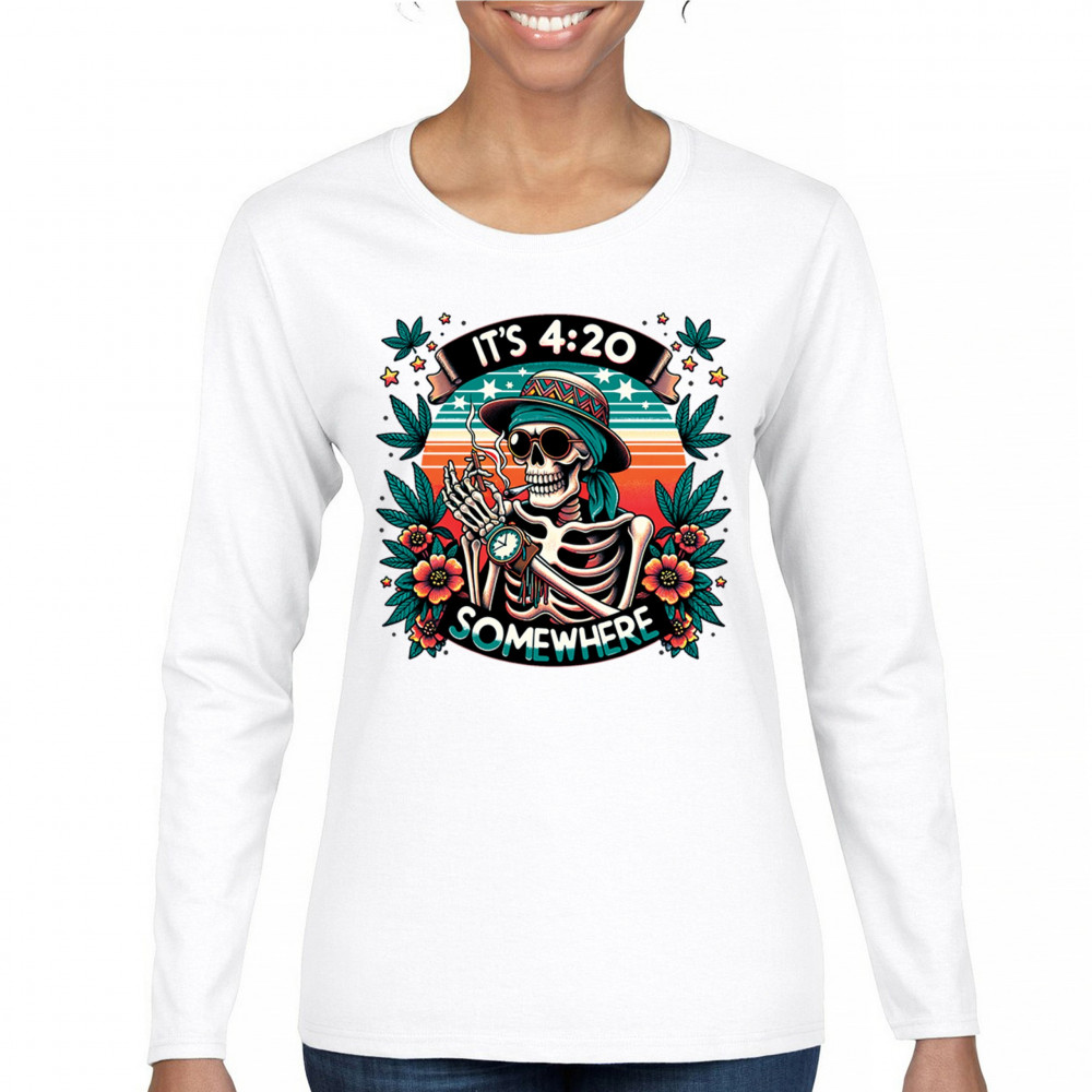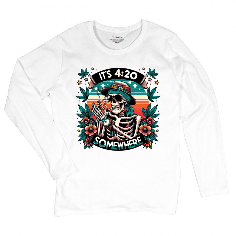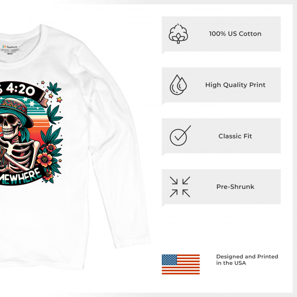Get lifted with this “It’s 4:20 Somewhere†design featuring a joint-smoking skeleton, tropical sunset, and Deadhead stoner vibes. With bold trippy colors and beachy weed art, this tee is perfect for April 20 parties, summer festivals, and cannabis lovers living the high life.