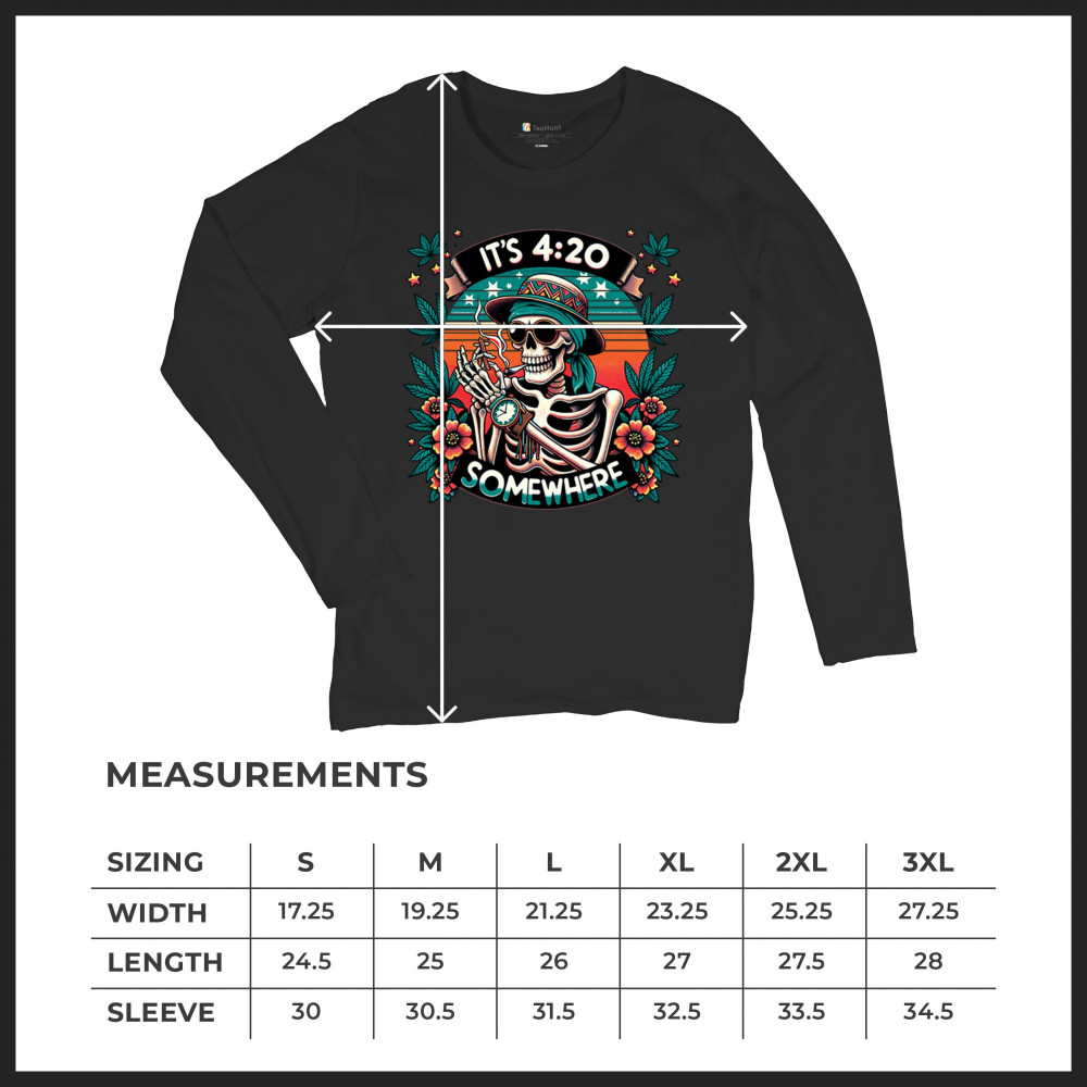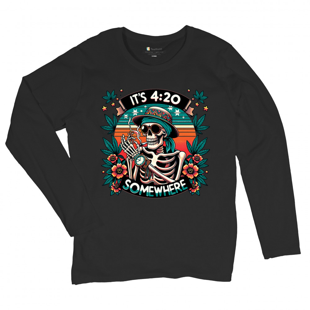 IT'S 420 SOMEWHERE women's long sleeve t-shirt weed skeleton rasta reggae vibe black