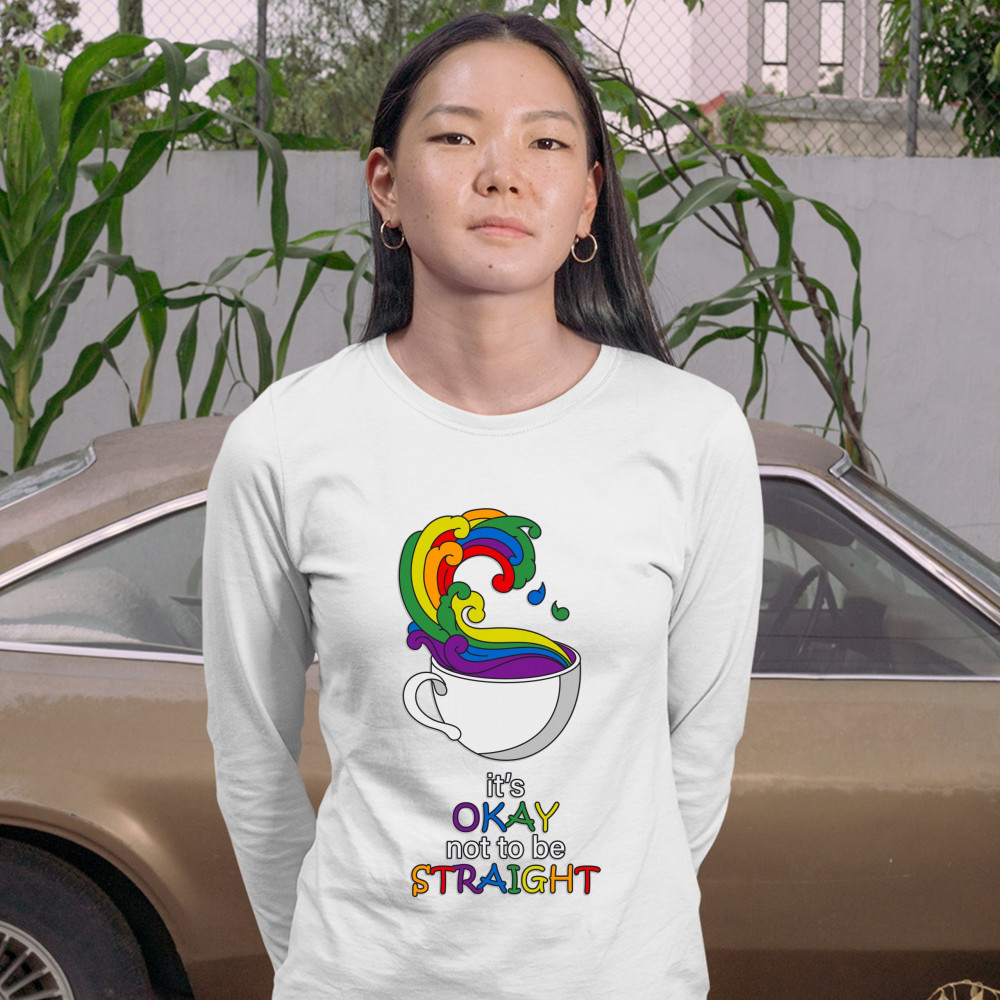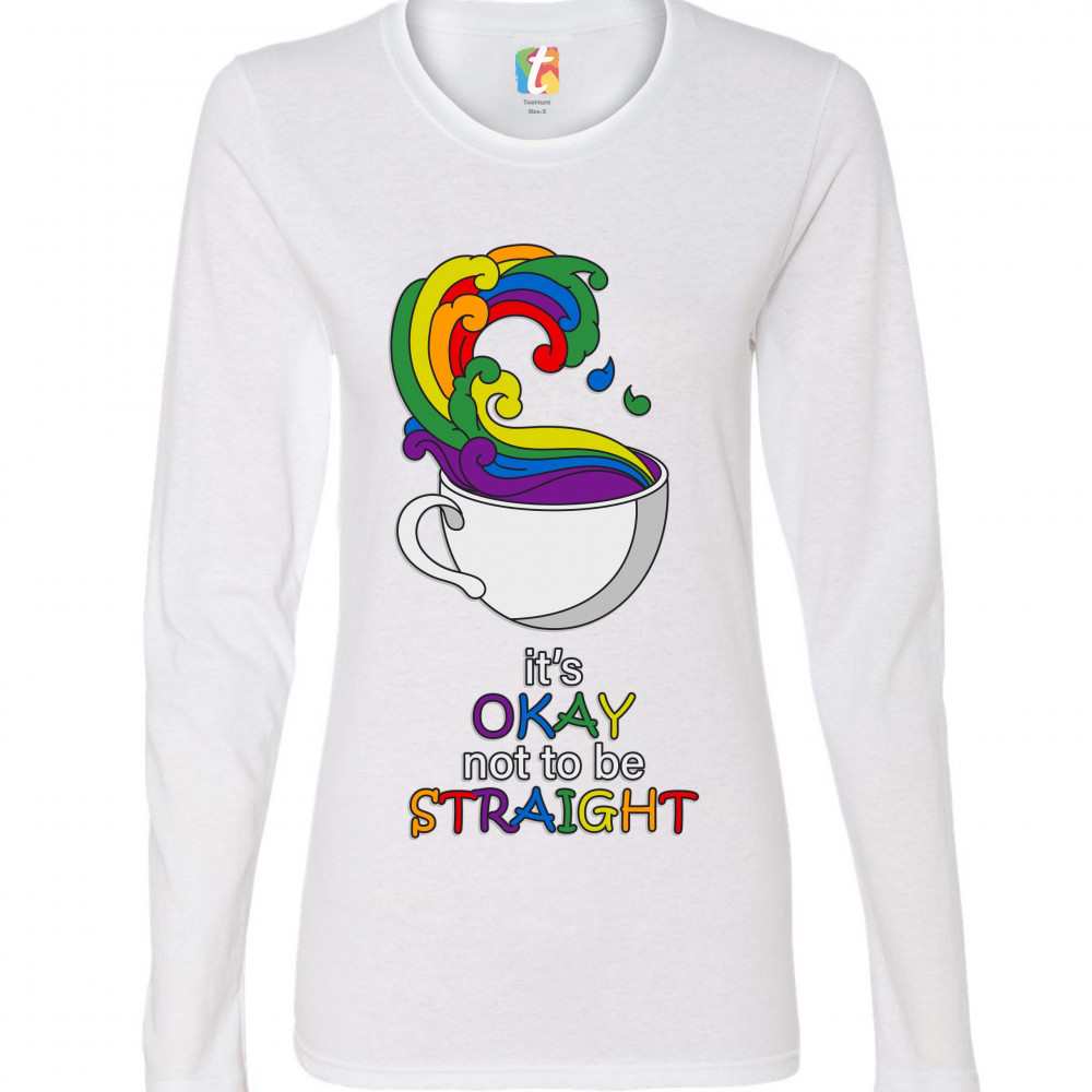 IT'S OKAY NOT TO BE STRAIGHT women's long sleeve t-shirt gay acceptance lgbtq white