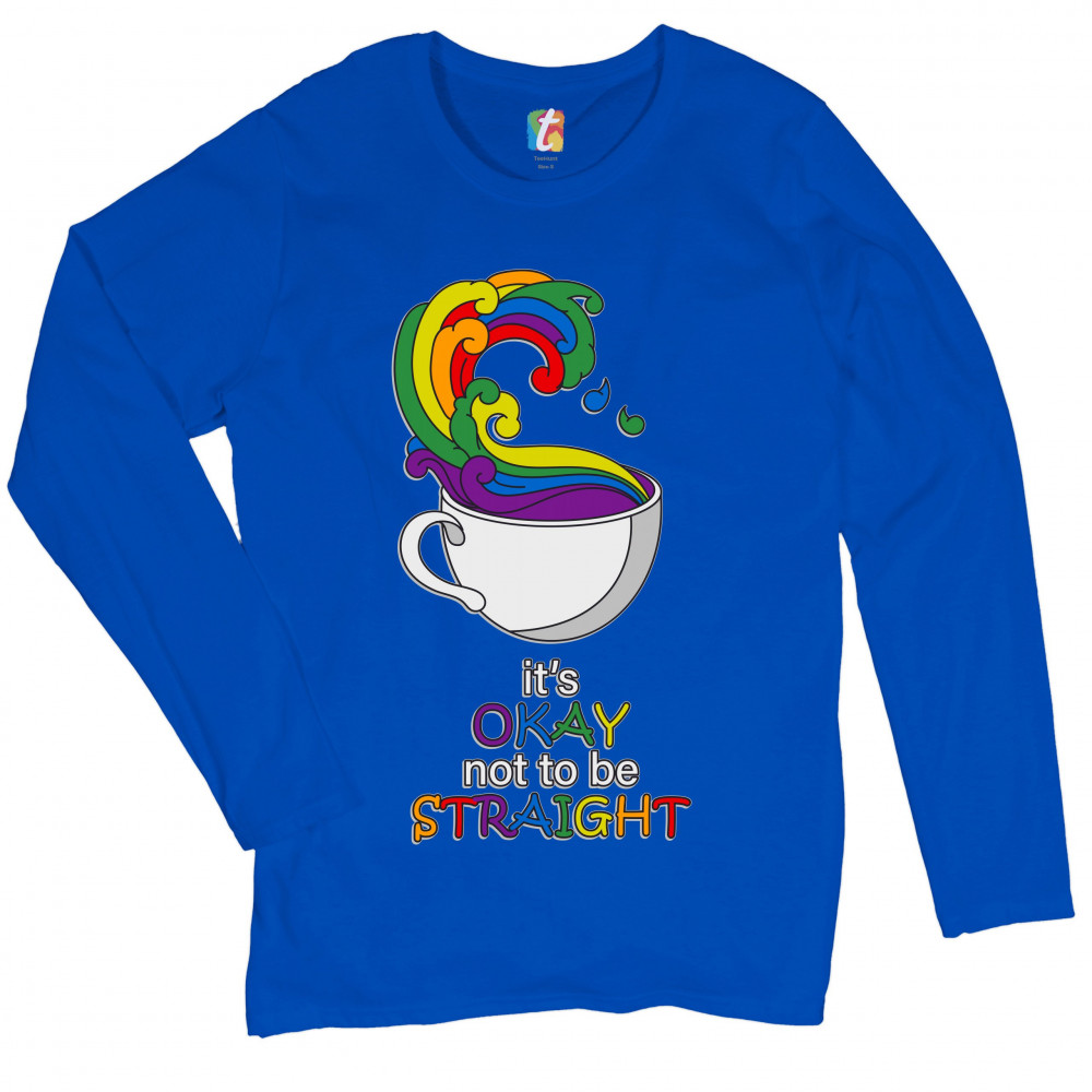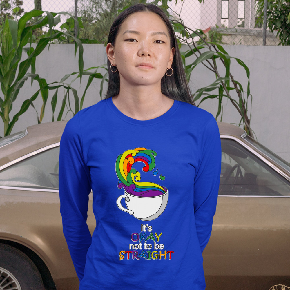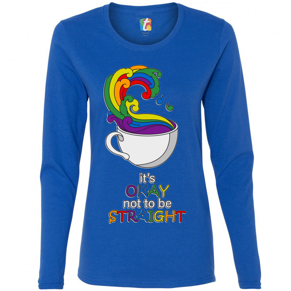 IT'S OKAY NOT TO BE STRAIGHT women's long sleeve t-shirt gay acceptance lgbtq royal blue