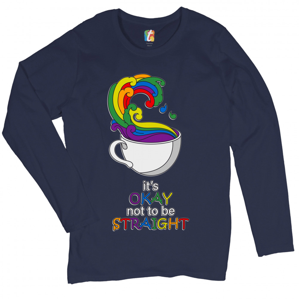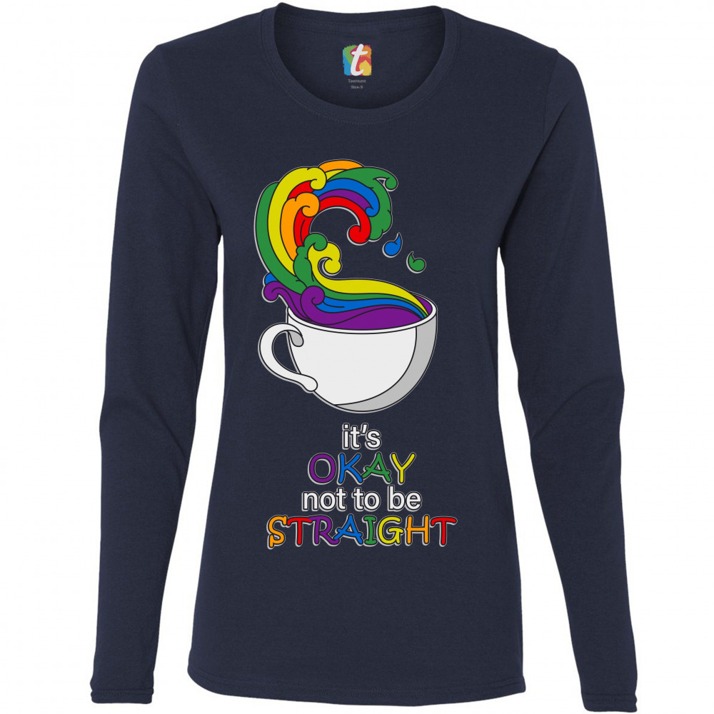 IT'S OKAY NOT TO BE STRAIGHT women's long sleeve t-shirt gay acceptance lgbtq navy blue