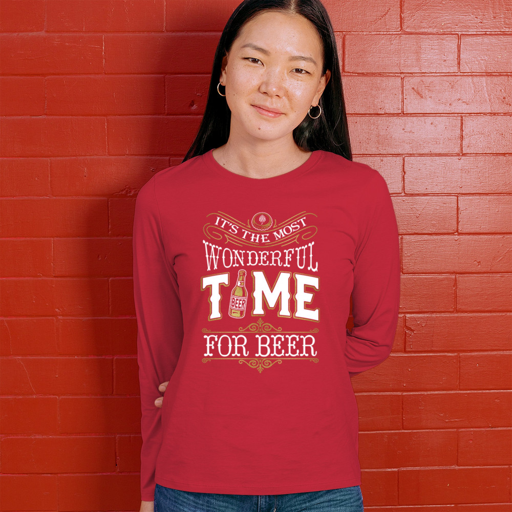 Bring some holiday cheer to your wardrobe with our "It's The Most Wonderful Time for Beer" design. Featuring a festive beer bottle and playful text, this design is perfect for adding humor to holiday gatherings, beer festivals, or any casual outing. Ideal for beer lovers and brew enthusiasts, it makes a fantastic gift for those who appreciate beer-themed fun. Embrace the season and your love for beer with this delightful and humorous design!