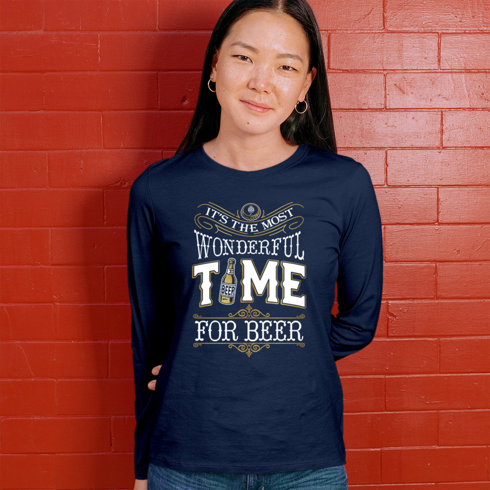 Bring some holiday cheer to your wardrobe with our "It's The Most Wonderful Time for Beer" design. Featuring a festive beer bottle and playful text, this design is perfect for adding humor to holiday gatherings, beer festivals, or any casual outing. Ideal for beer lovers and brew enthusiasts, it makes a fantastic gift for those who appreciate beer-themed fun. Embrace the season and your love for beer with this delightful and humorous design!