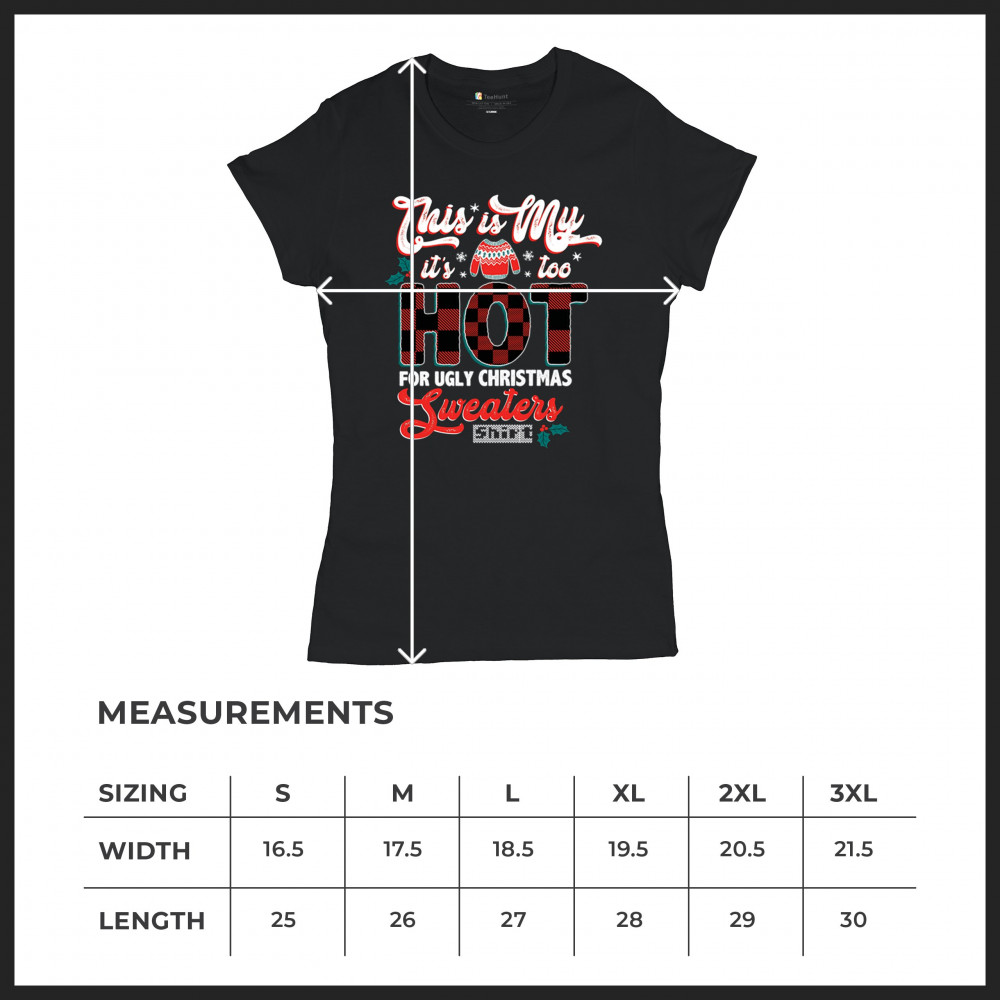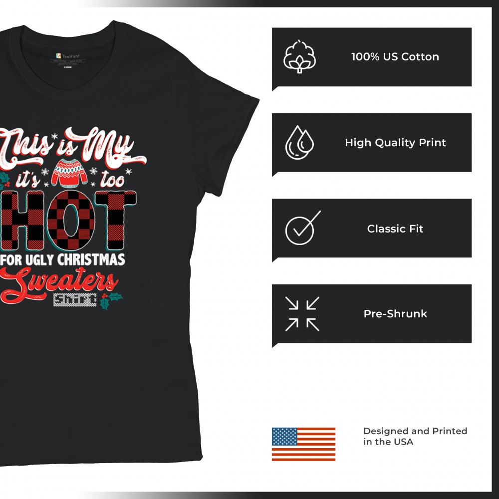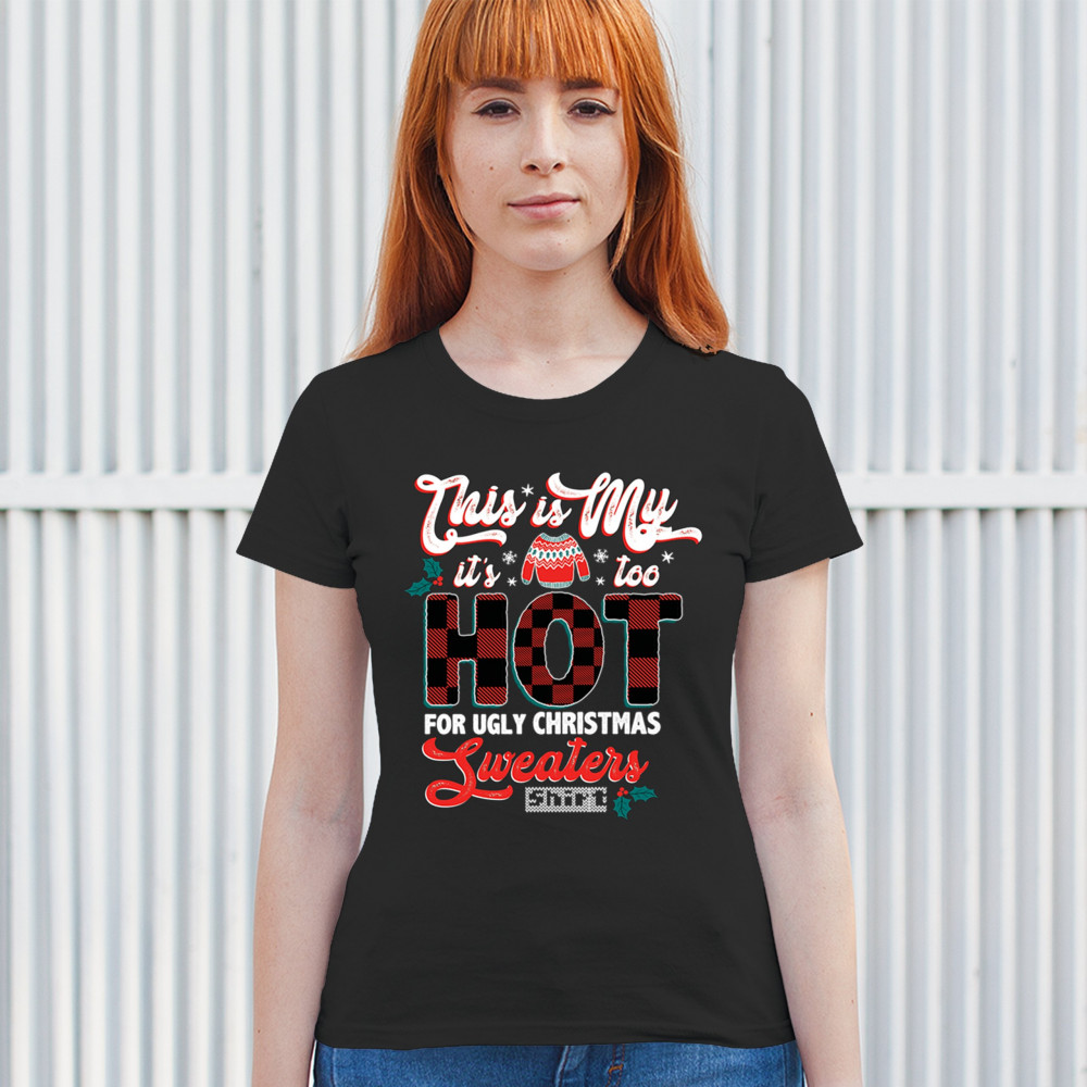 Stay festive without the extra warmth! This "Too Hot for Ugly Christmas Sweaters" shirt is perfect for those who love Christmas cheer with a lighthearted touch.