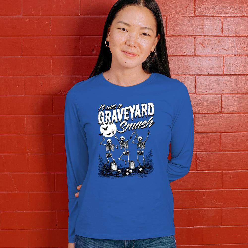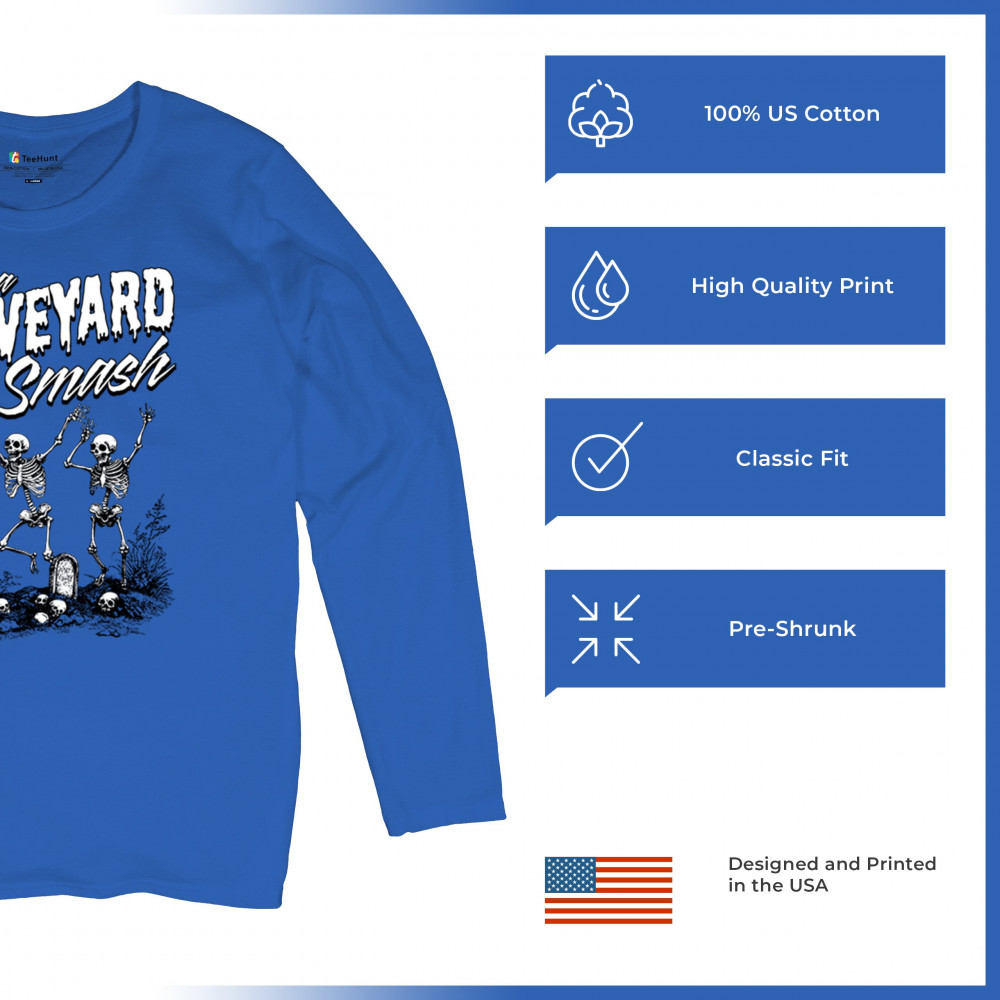 Add a touch of spooky fun to your Halloween attire with this "Graveyard Smash" design, showcasing skeletons dancing under the moonlight in a graveyard. Ideal for anyone who loves Halloween, this graphic tee is perfect for parties, haunted houses, or casual trick-or-treating. Made from high-quality materials, it offers both comfort and style, ensuring you look great while embracing the festive spirit. Available in multiple sizes, this shirt is a must-have for your Halloween collection.