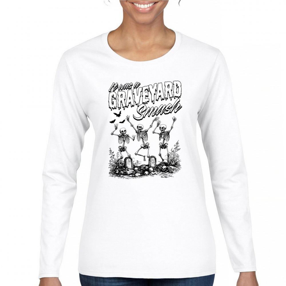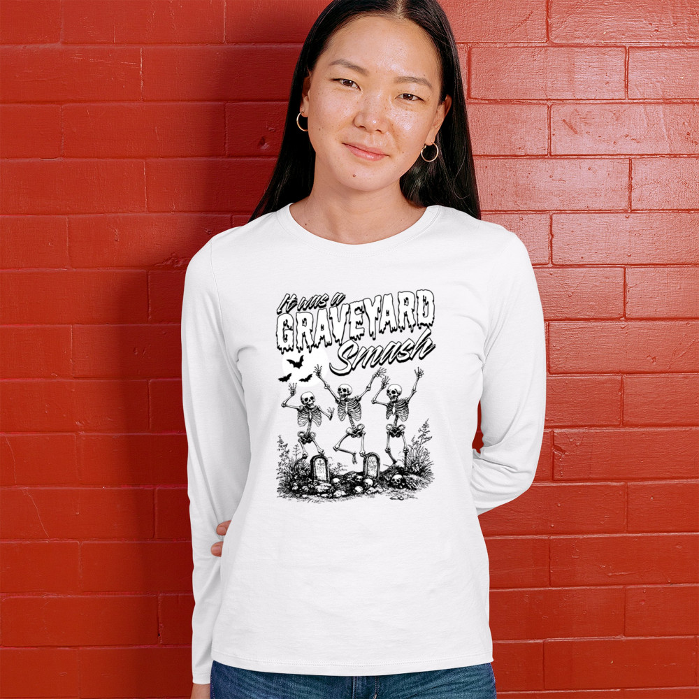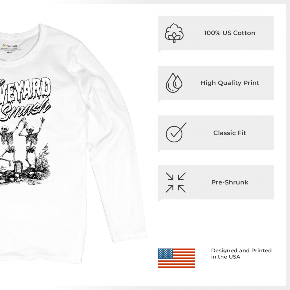 Add a touch of spooky fun to your Halloween attire with this "Graveyard Smash" design, showcasing skeletons dancing under the moonlight in a graveyard. Ideal for anyone who loves Halloween, this graphic tee is perfect for parties, haunted houses, or casual trick-or-treating. Made from high-quality materials, it offers both comfort and style, ensuring you look great while embracing the festive spirit. Available in multiple sizes, this shirt is a must-have for your Halloween collection.