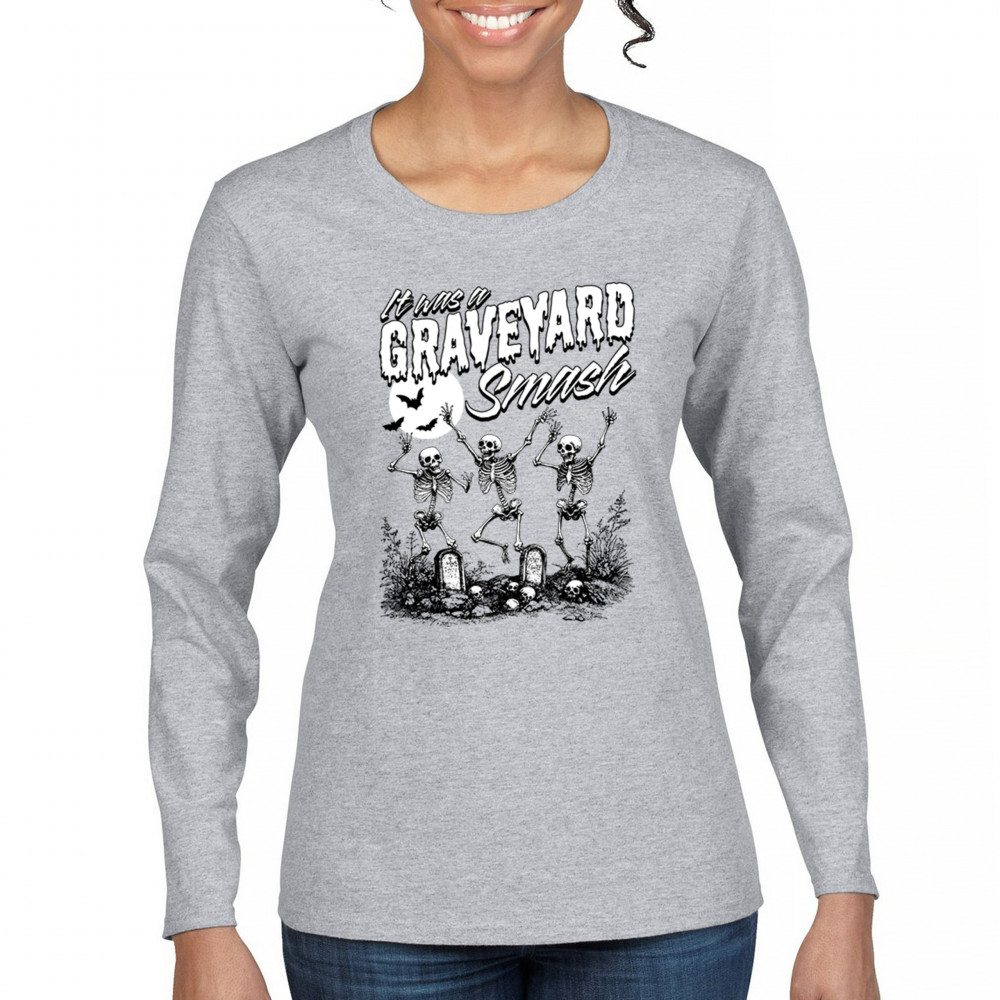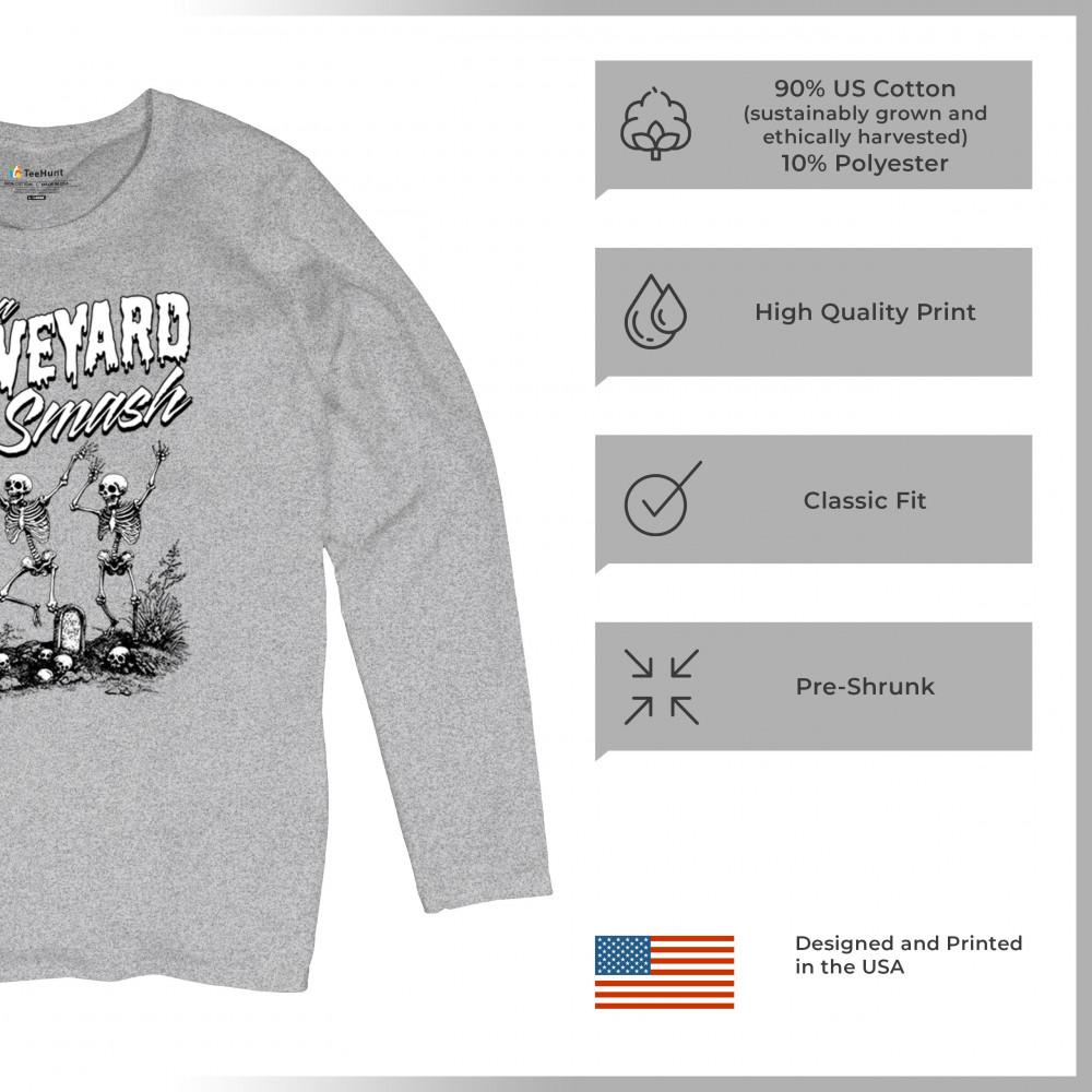 Add a touch of spooky fun to your Halloween attire with this "Graveyard Smash" design, showcasing skeletons dancing under the moonlight in a graveyard. Ideal for anyone who loves Halloween, this graphic tee is perfect for parties, haunted houses, or casual trick-or-treating. Made from high-quality materials, it offers both comfort and style, ensuring you look great while embracing the festive spirit. Available in multiple sizes, this shirt is a must-have for your Halloween collection.