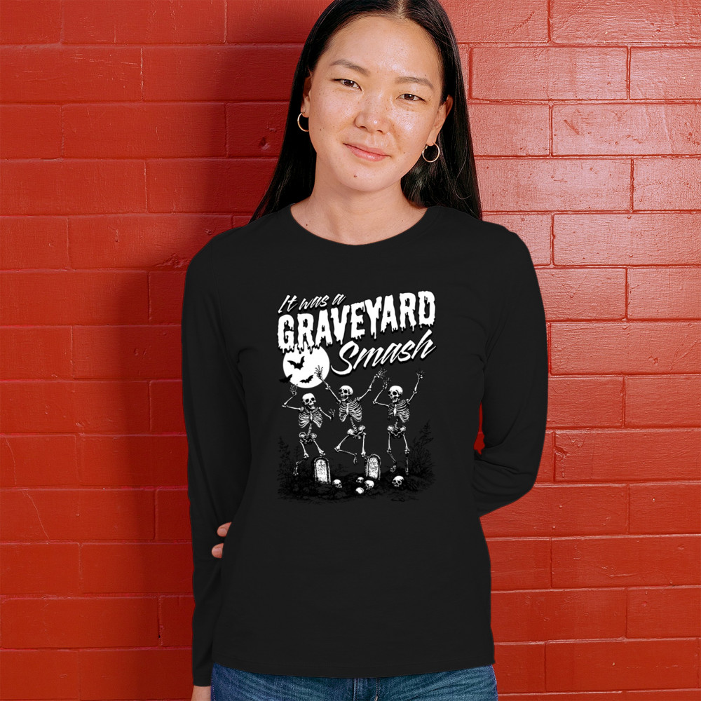 Add a touch of spooky fun to your Halloween attire with this "Graveyard Smash" design, showcasing skeletons dancing under the moonlight in a graveyard. Ideal for anyone who loves Halloween, this graphic tee is perfect for parties, haunted houses, or casual trick-or-treating. Made from high-quality materials, it offers both comfort and style, ensuring you look great while embracing the festive spirit. Available in multiple sizes, this shirt is a must-have for your Halloween collection.