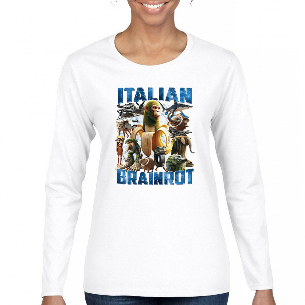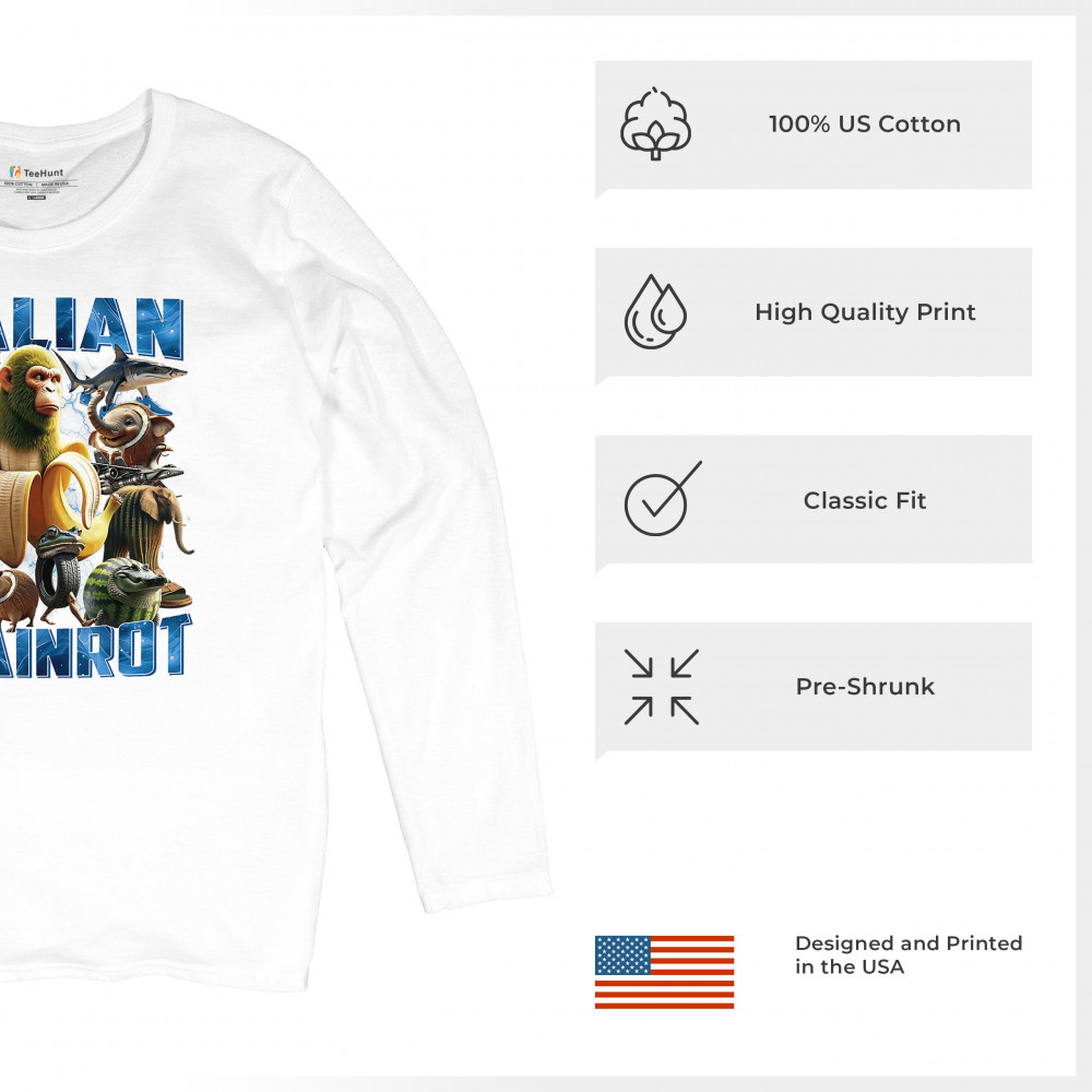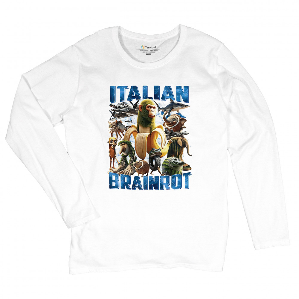 This design captures the full force of Italian brainrot—bananas, sharks, monkeys, and meme beasts collide in an unfiltered internet-core explosion. Perfect for fans of cursed humor, Gen Z trends, absurd fashion, TikTok memes, ironic style, surreal pop art, chaotic culture, digital nonsense, Gen Alpha brainrot, and hyper-online energy.