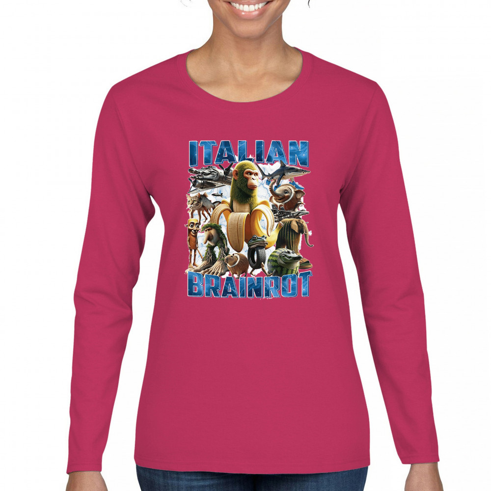 This design captures the full force of Italian brainrot—bananas, sharks, monkeys, and meme beasts collide in an unfiltered internet-core explosion. Perfect for fans of cursed humor, Gen Z trends, absurd fashion, TikTok memes, ironic style, surreal pop art, chaotic culture, digital nonsense, Gen Alpha brainrot, and hyper-online energy.