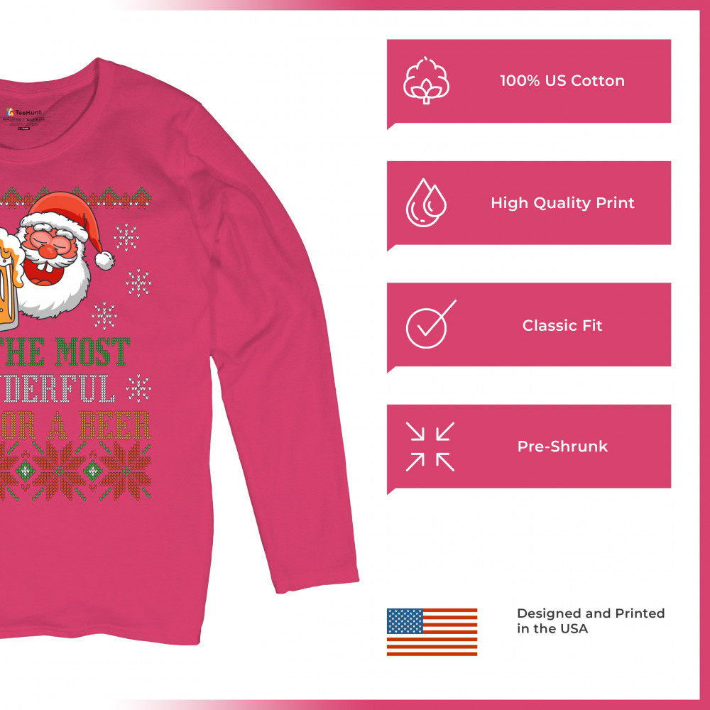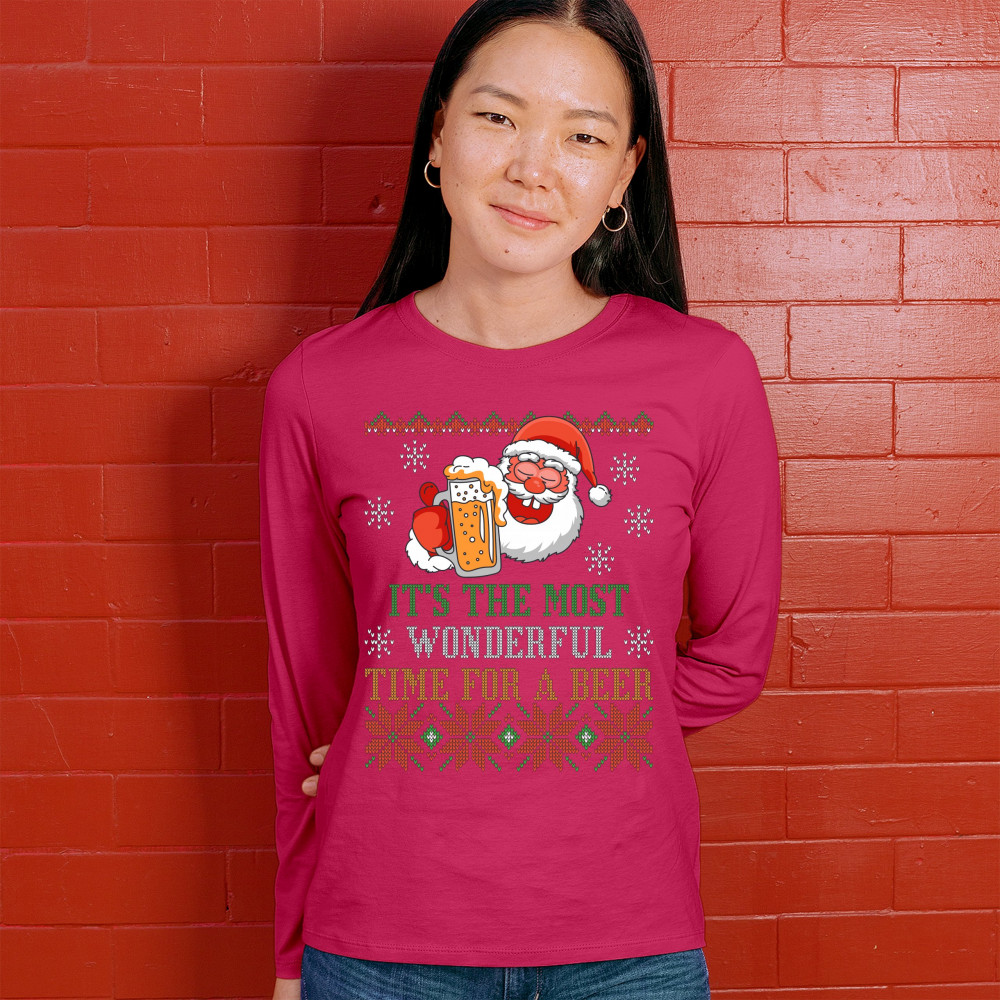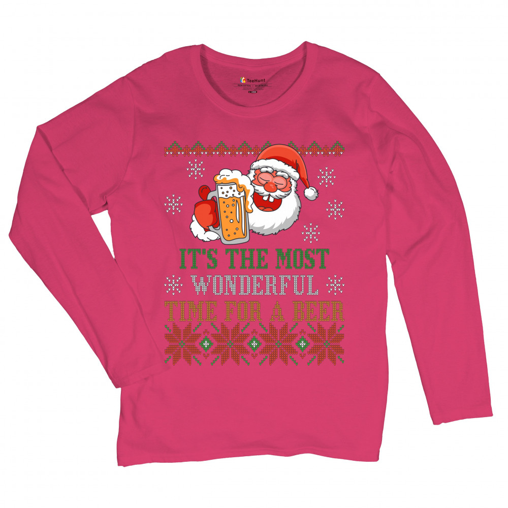 IT'S THE MOST WONDERFUL TIME FOR A BEER its the most wonderful time for a beer women's long sleeve t-shirt ugly sweater pink