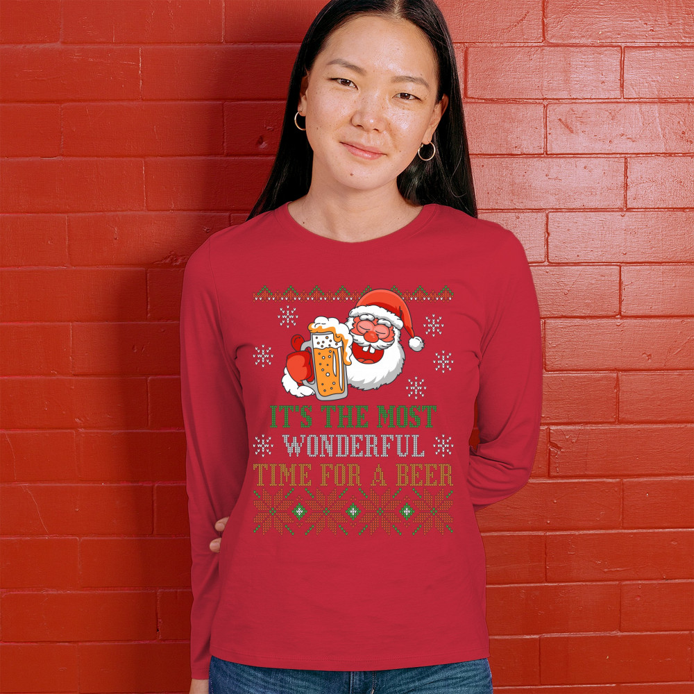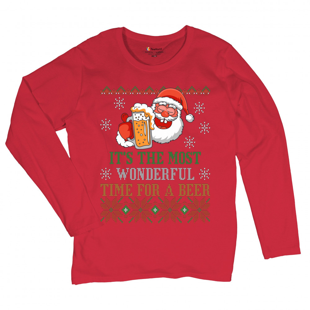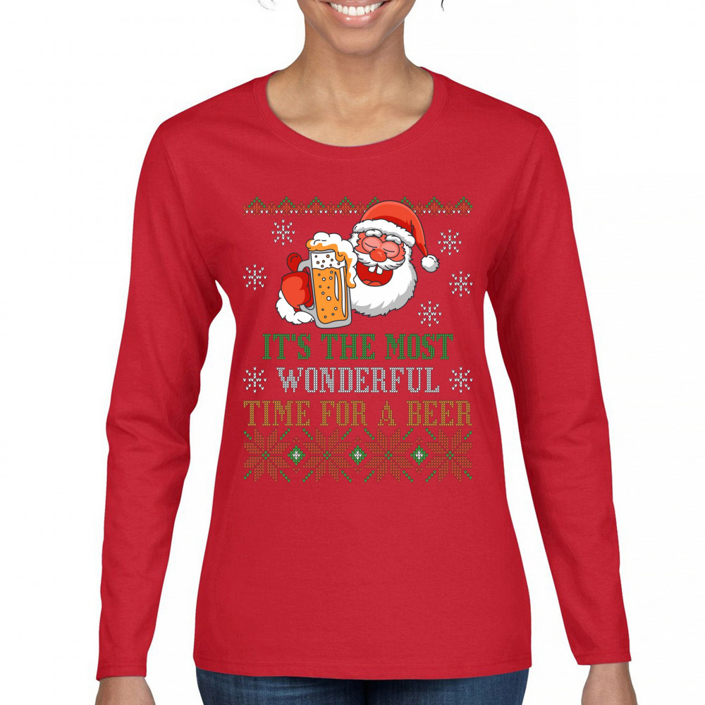 IT'S THE MOST WONDERFUL TIME FOR A BEER its the most wonderful time for a beer women's long sleeve t-shirt ugly sweater red